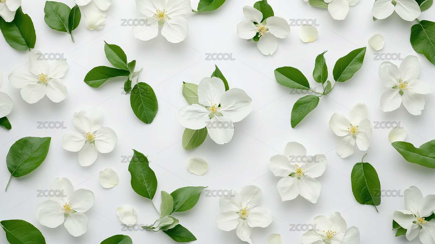 白色花朵与绿色叶子装饰