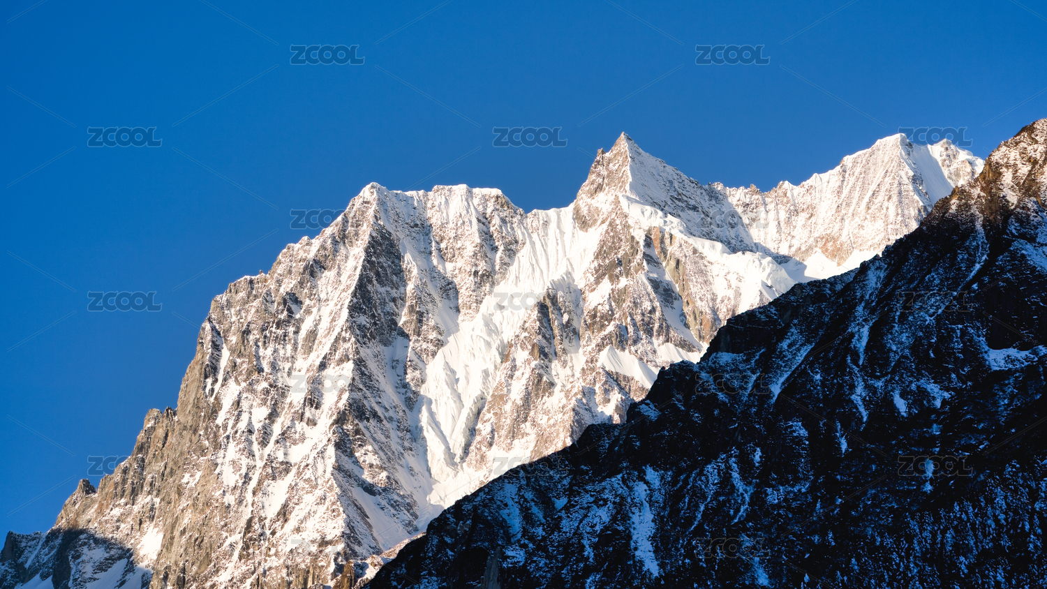长焦拍摄中国西藏林芝雪山日照金山细节特写