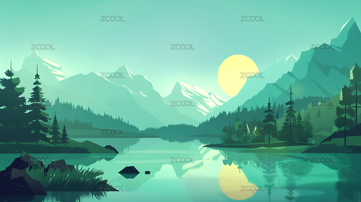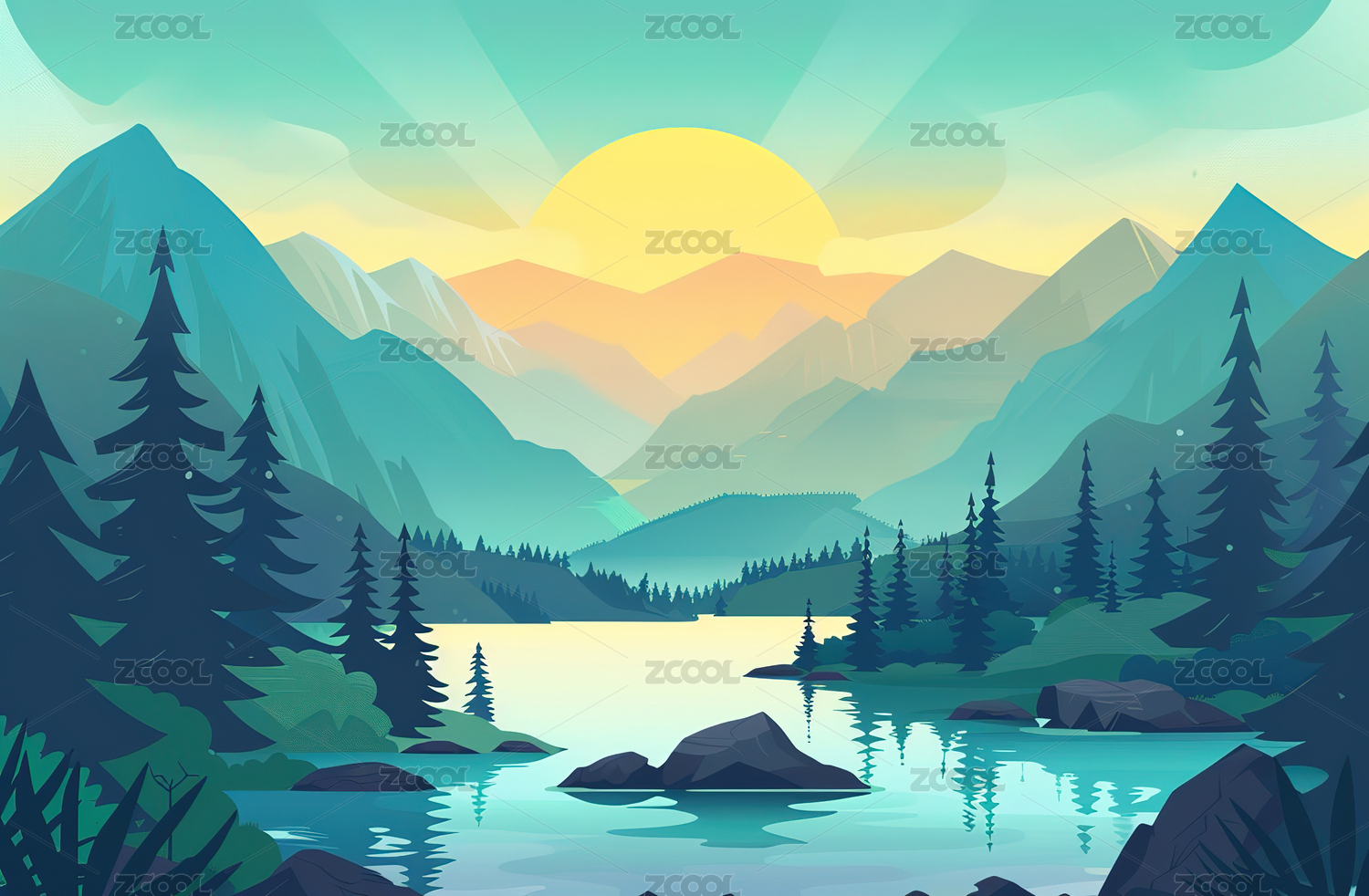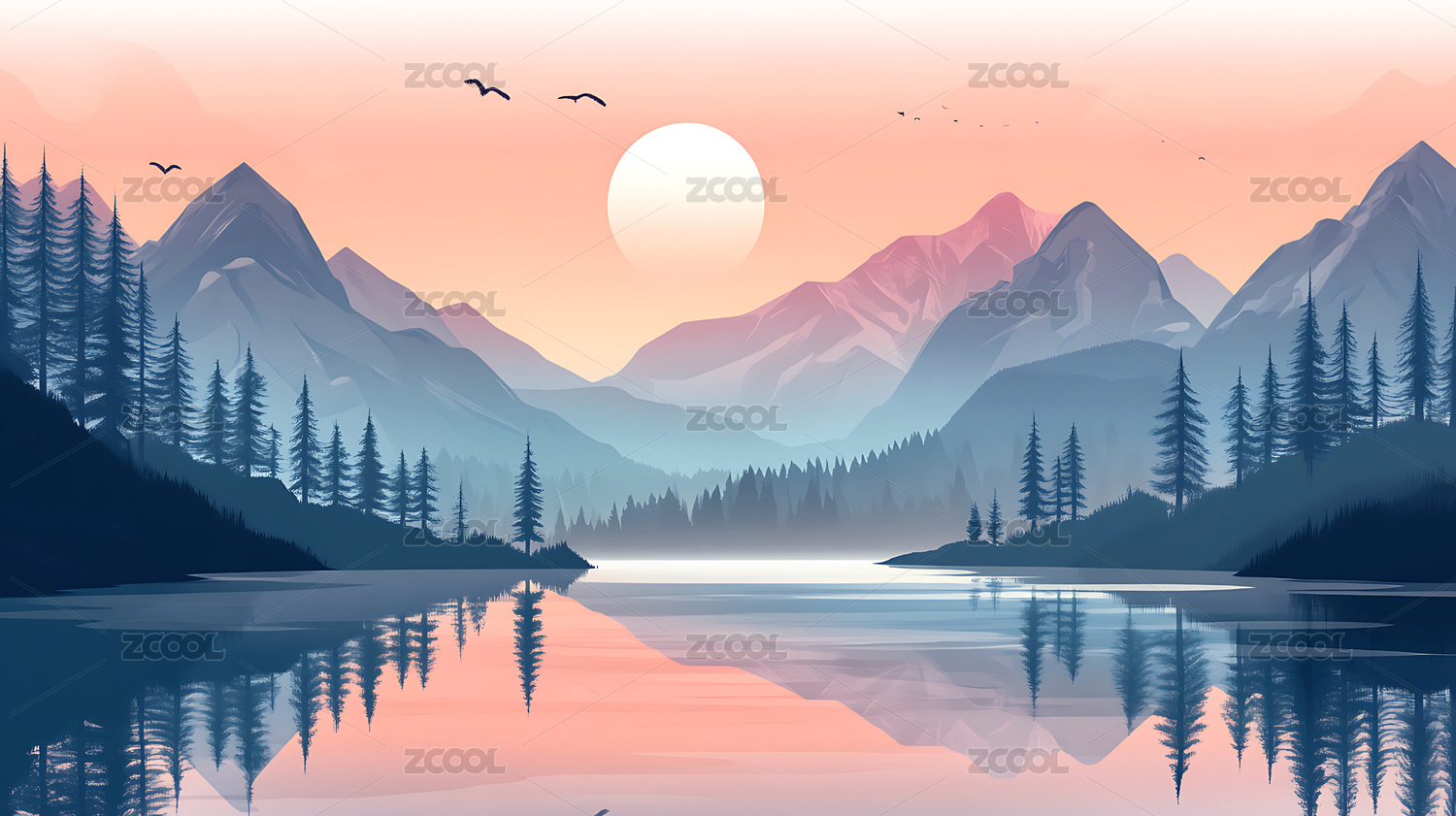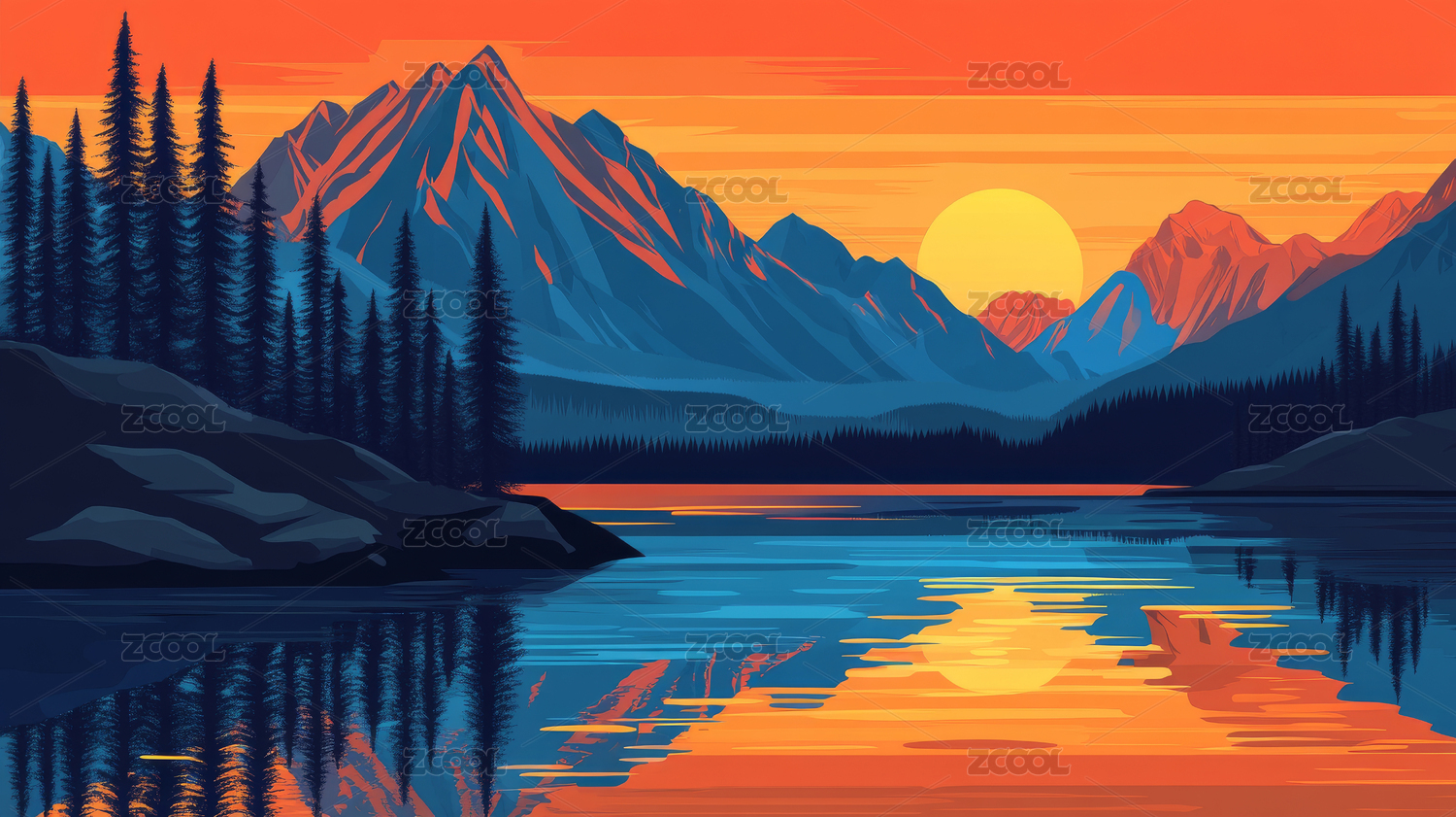 风景,天空,自然,高山,地形,户外,插画,日落,云,宁静