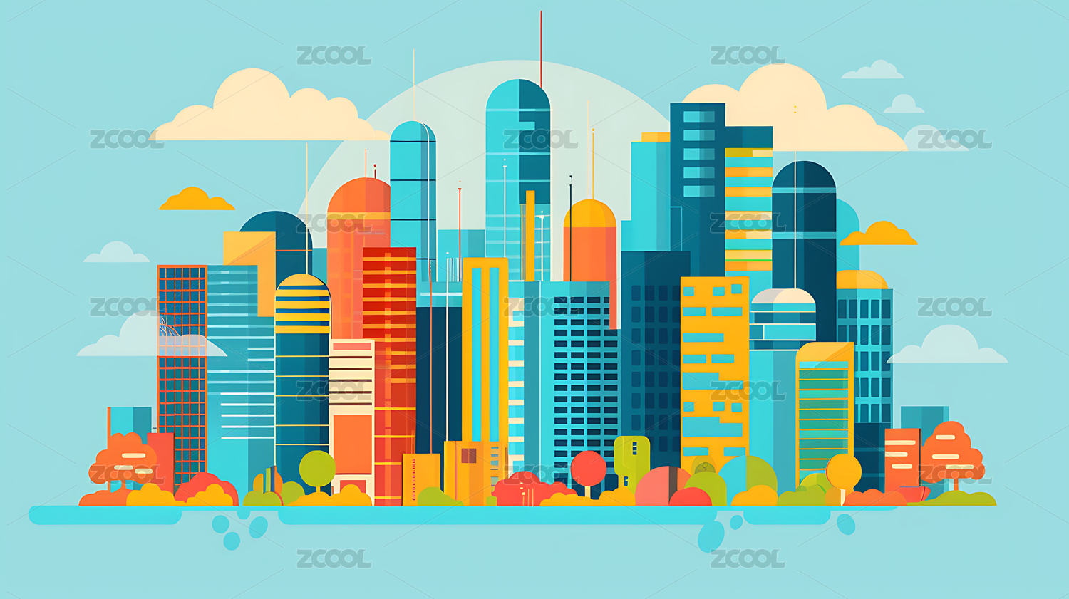 建筑,城市天际线,都市风景,摩天大楼,插画,旅游,旅行,建造,全景,户外