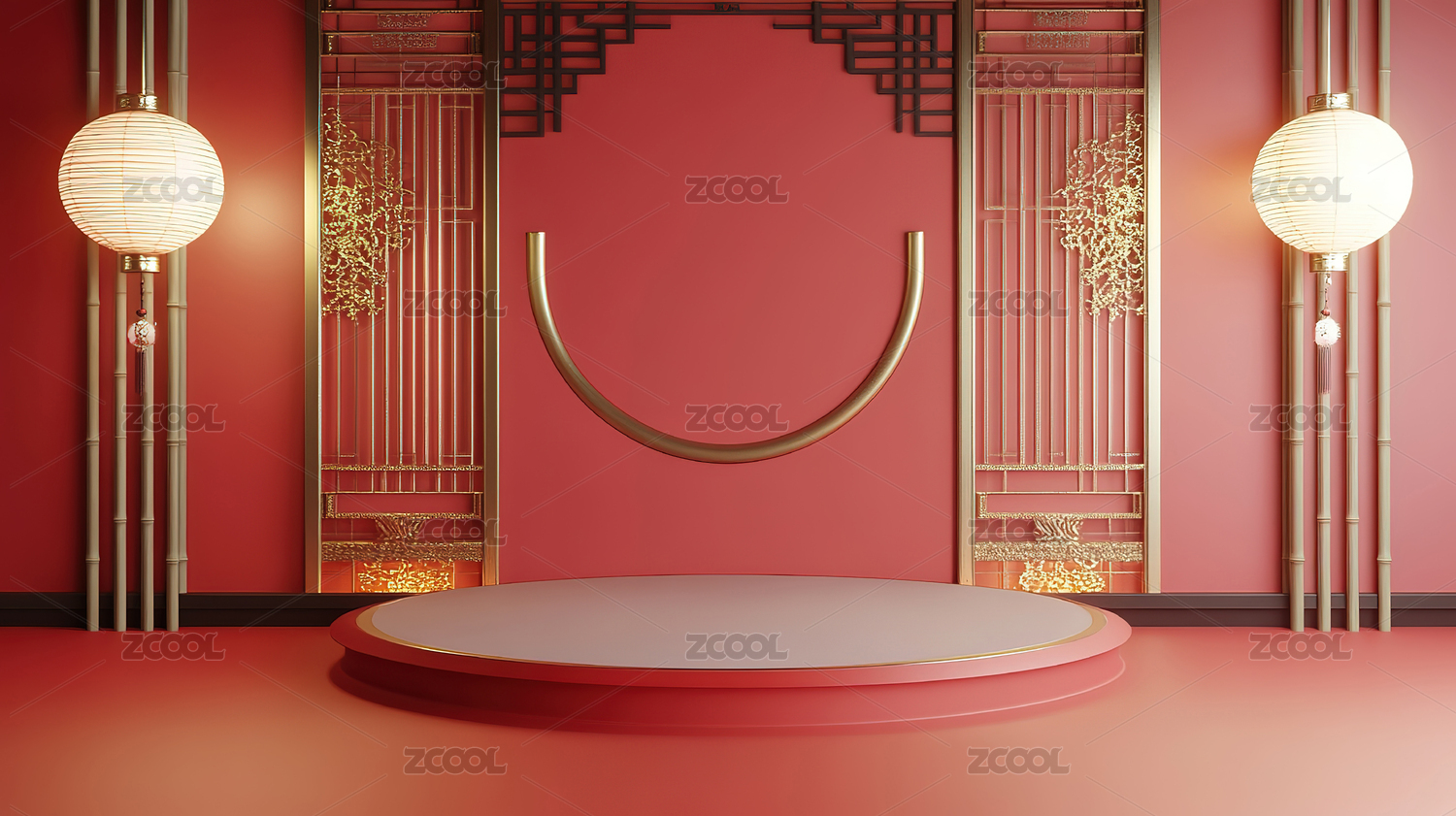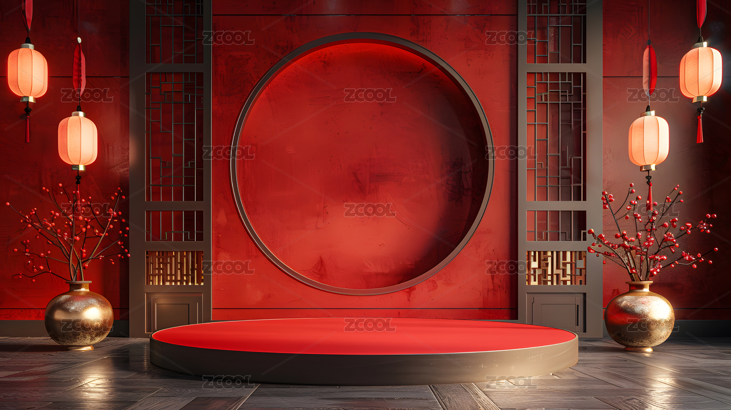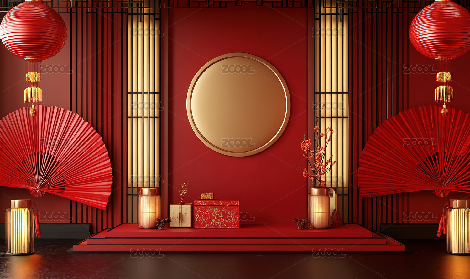 中式场景新年红色展台背景