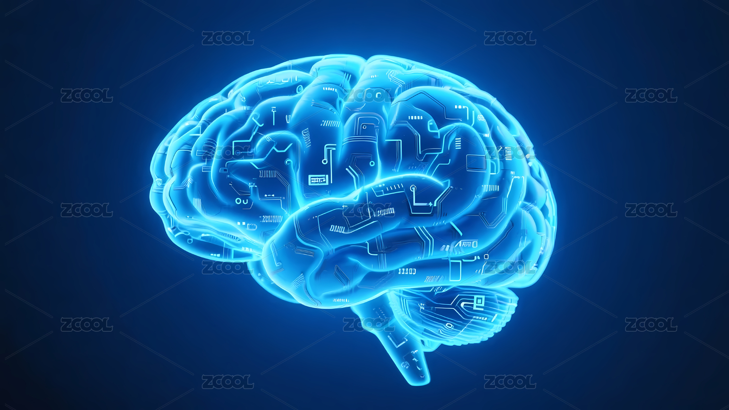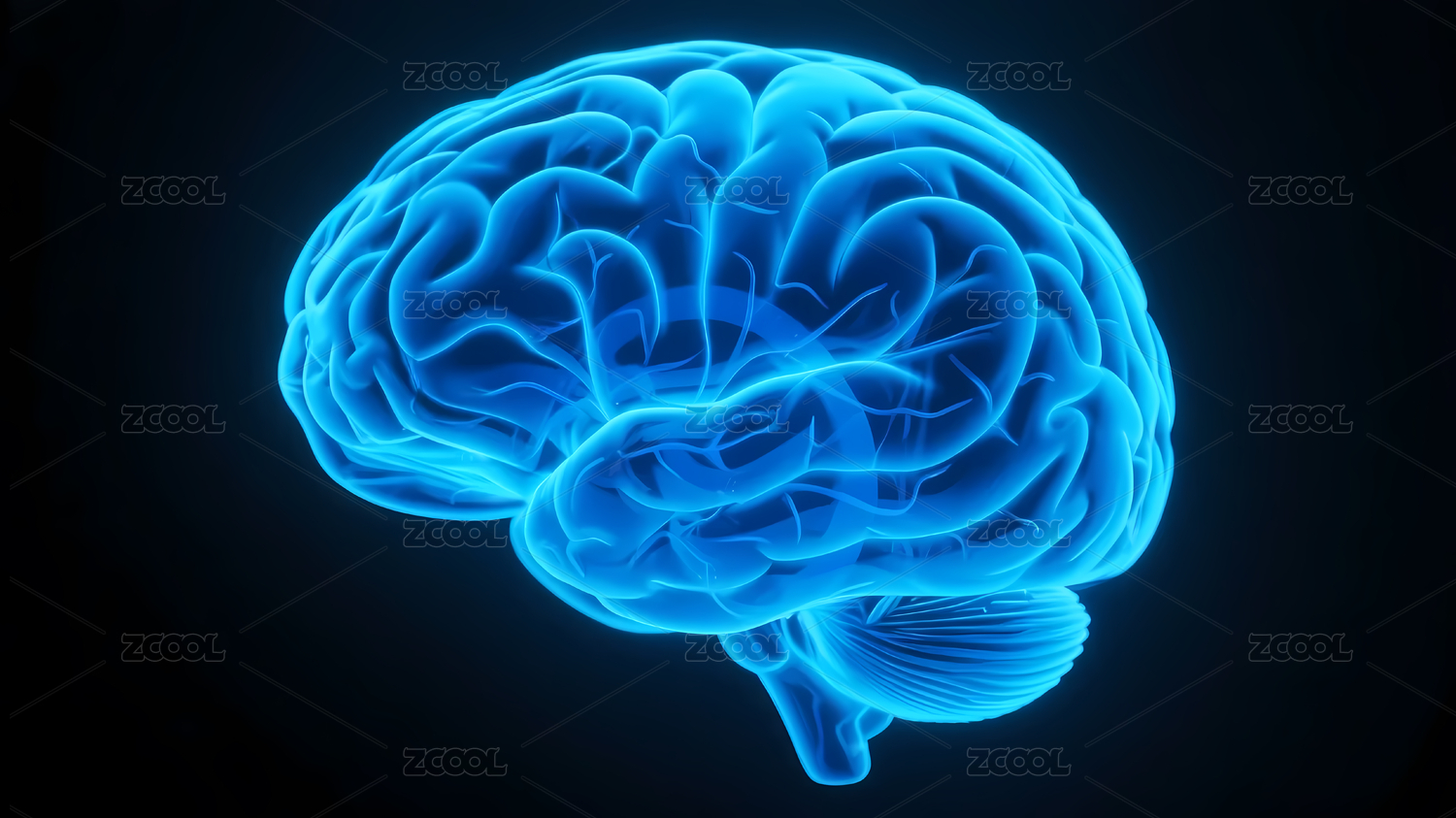 蓝色发光大脑深蓝背景