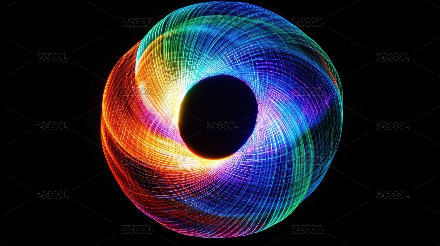 霓虹色光线编织的抽象环形
