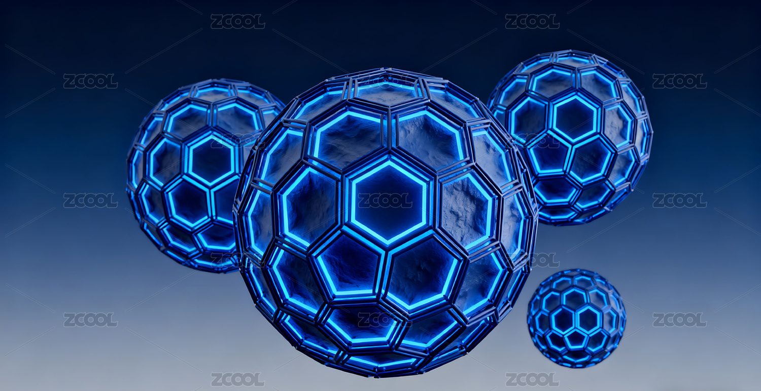 蜂窝结构的球体在蓝光下闪耀