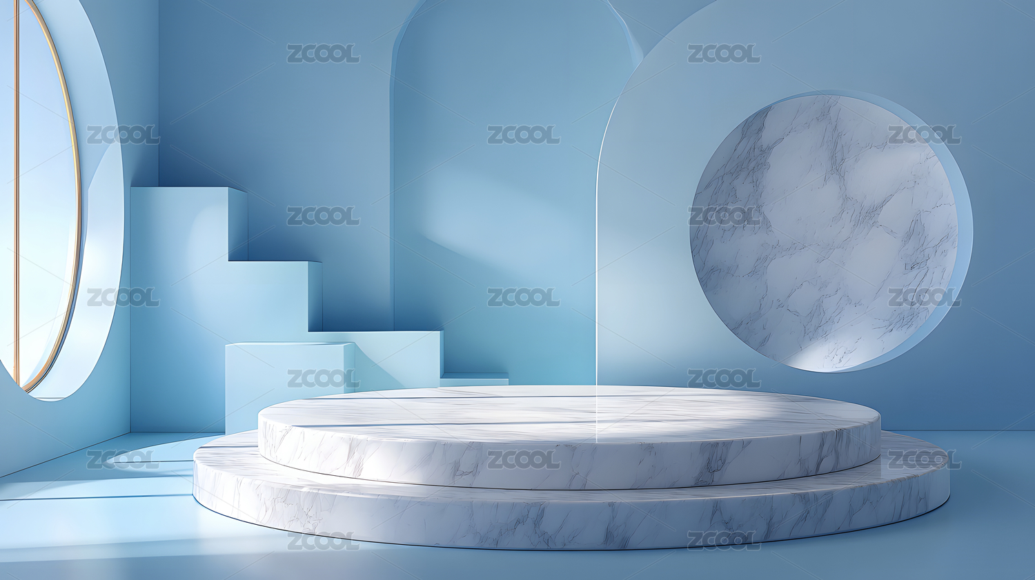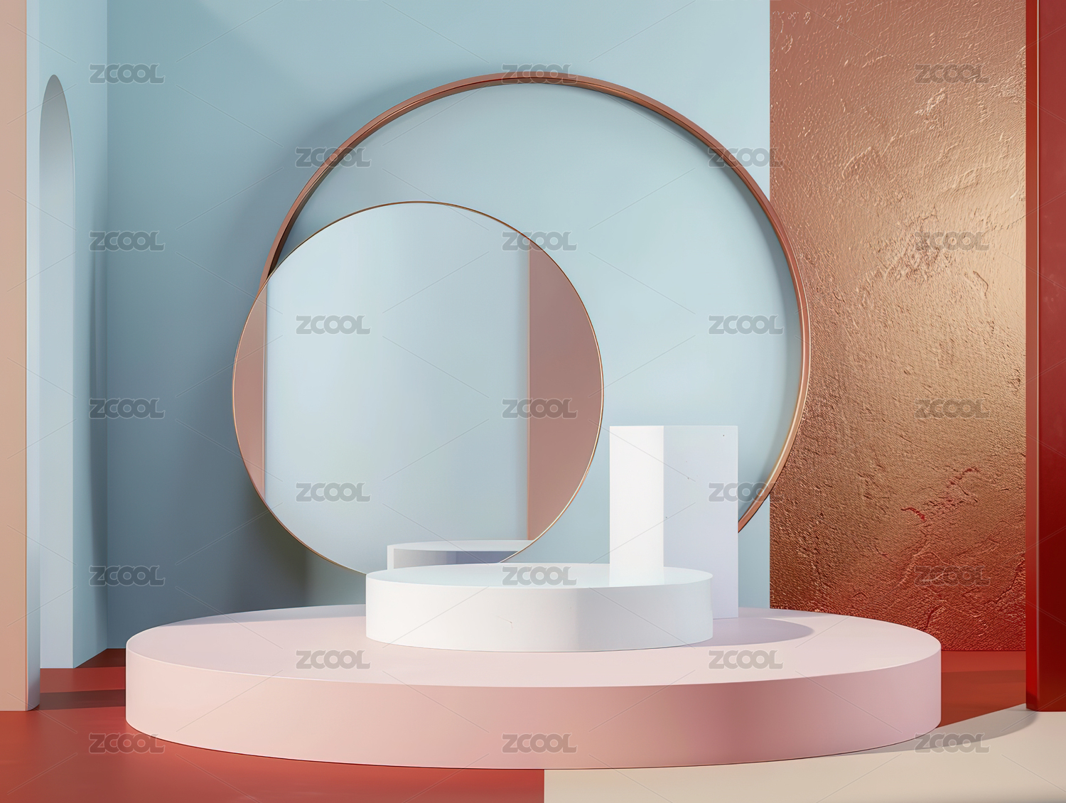 3D渲染背景简约圆形空间展台,电商科技未