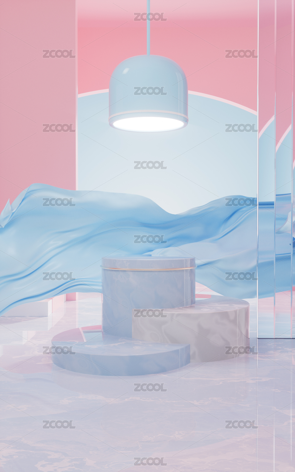 创意飘舞的布料与展示台3D渲染