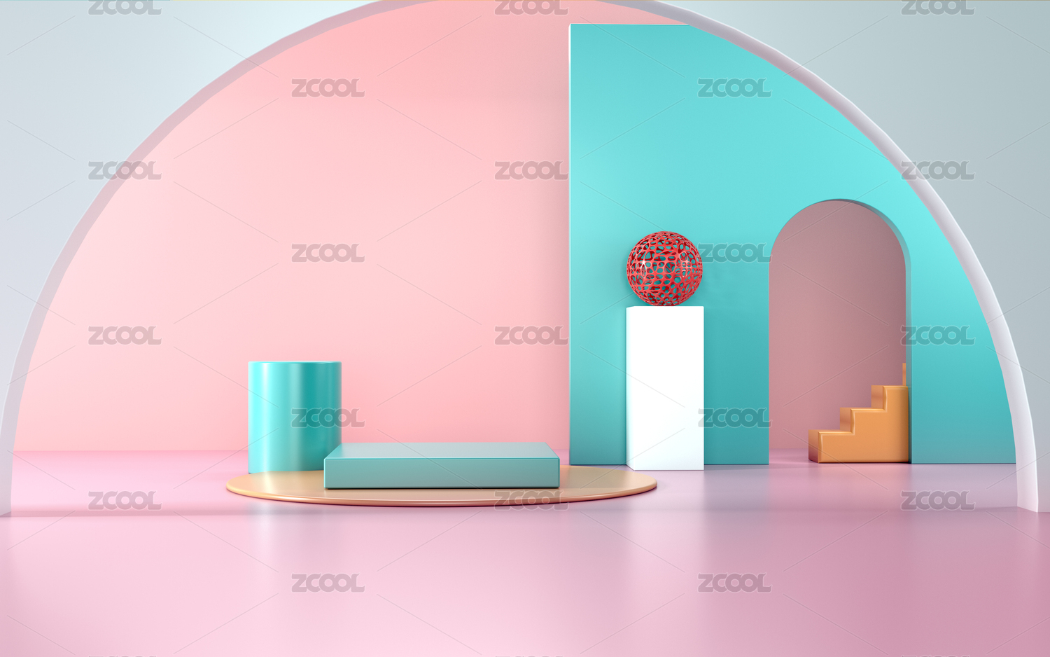 创意几何体展示台3D渲染