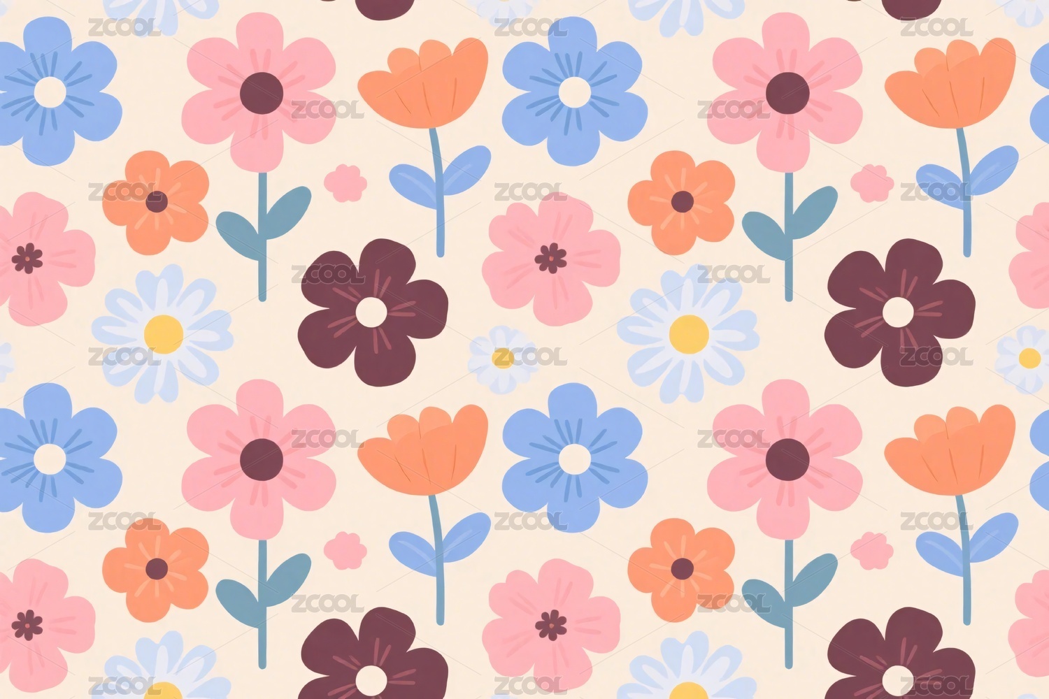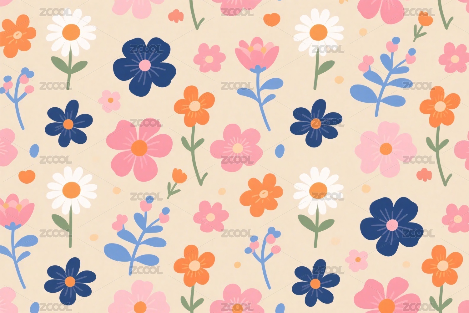 彩色花朵小碎花卡通插画背景