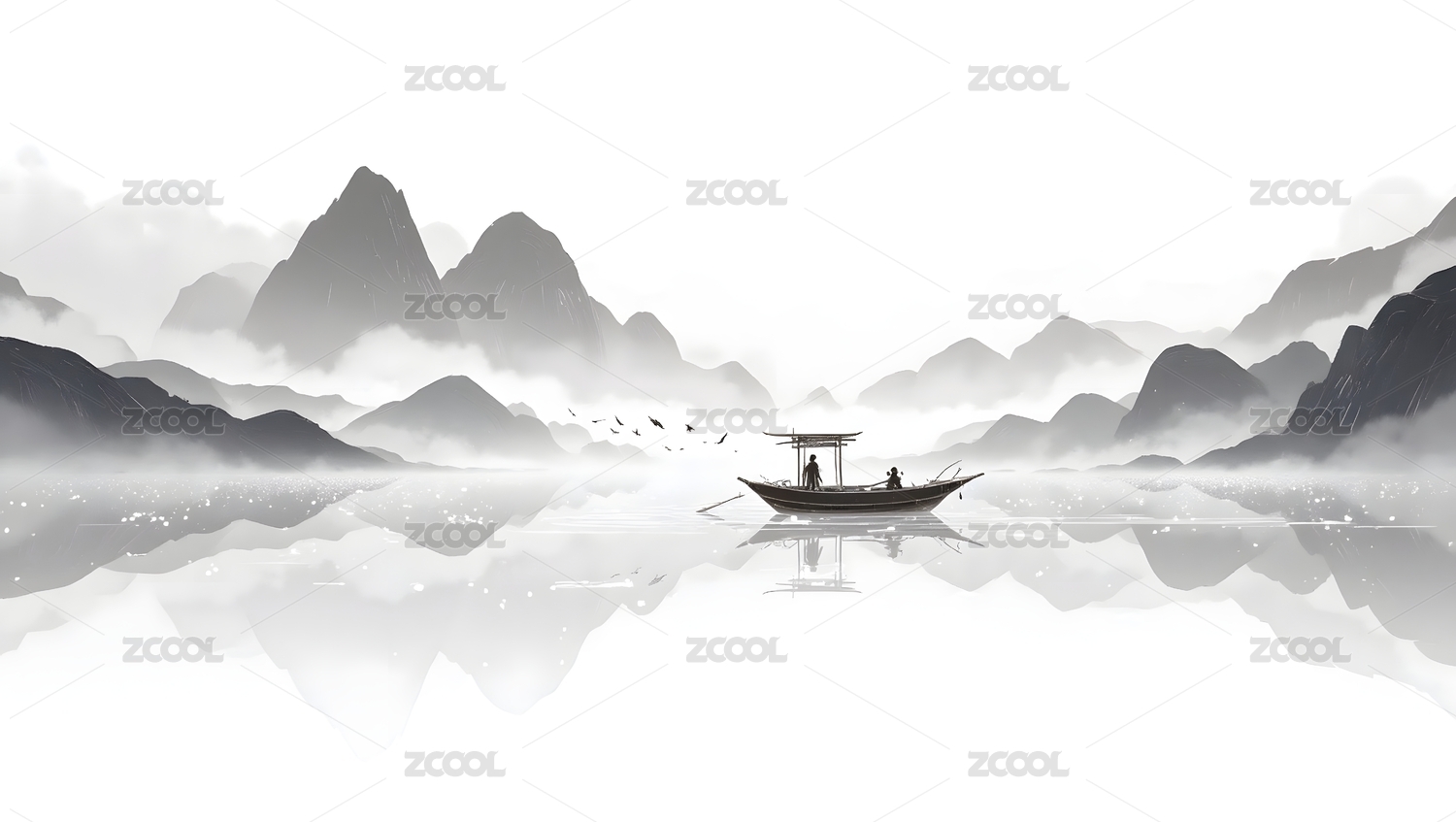 水墨山水孤舟远行