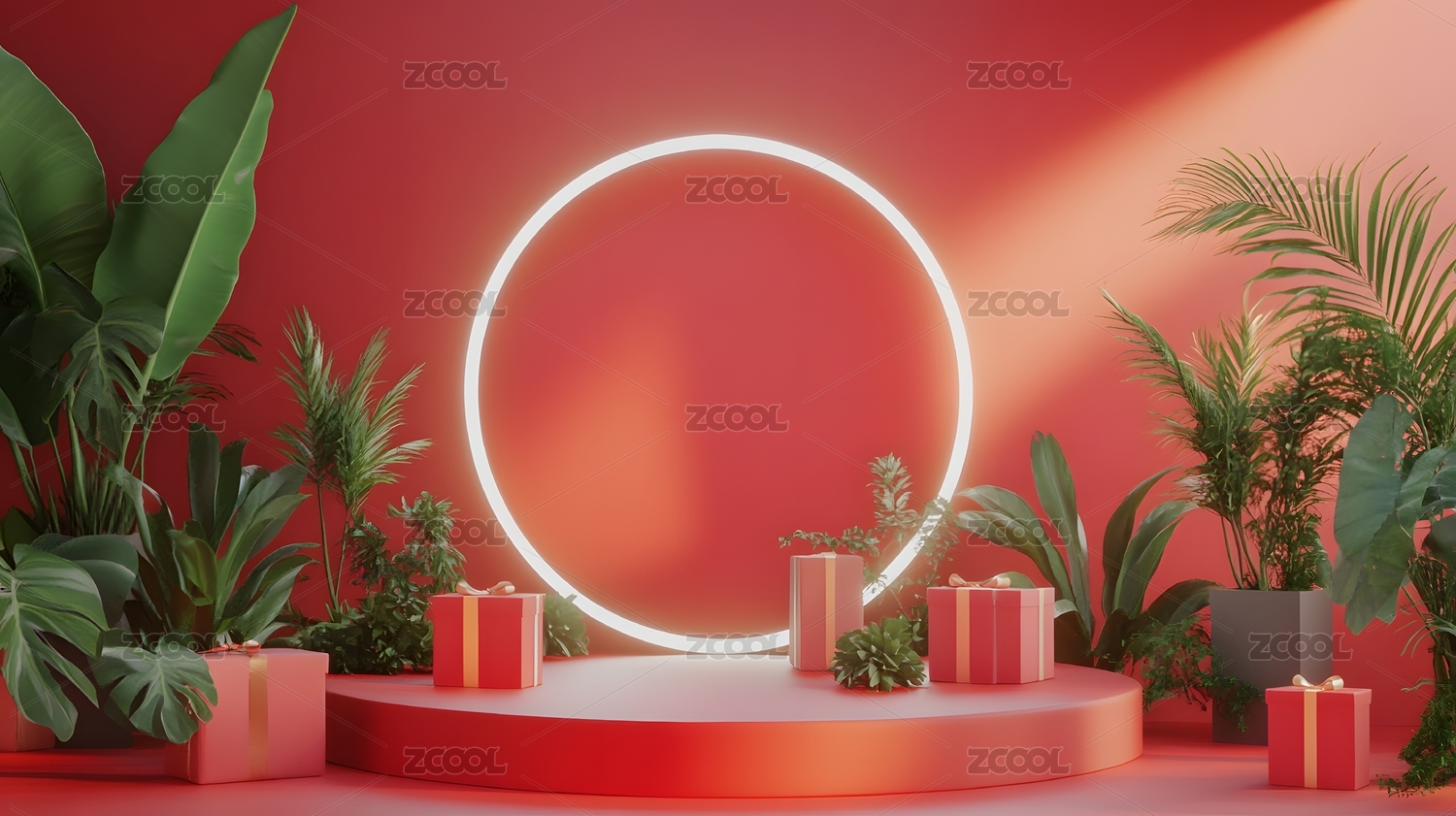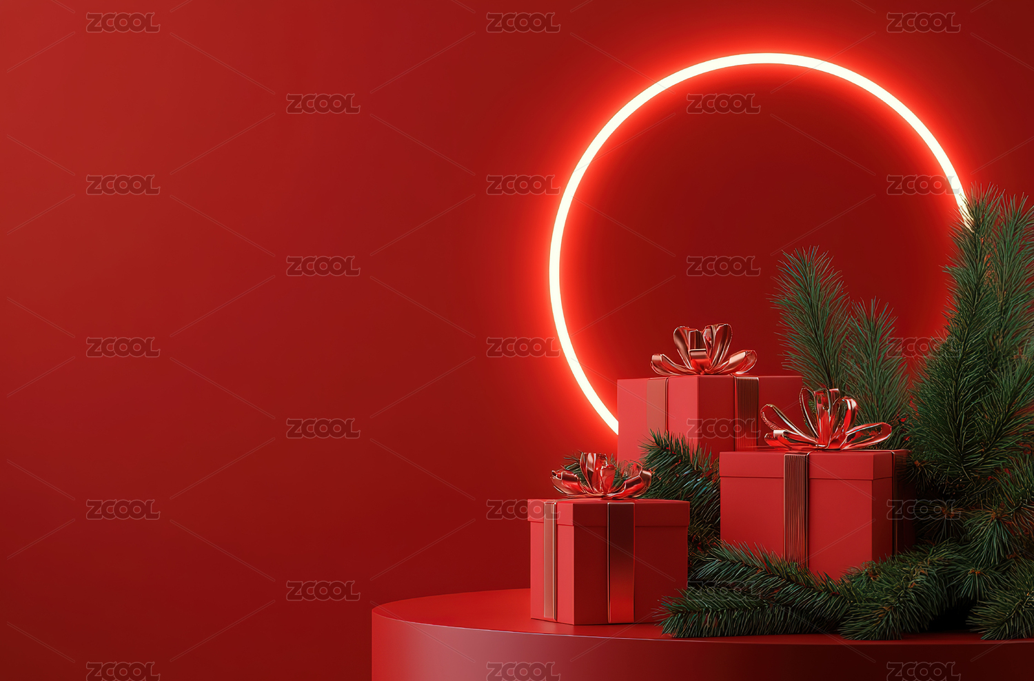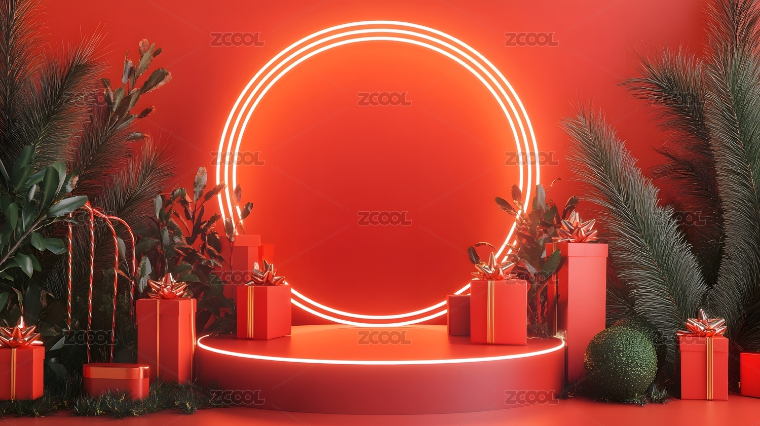 红色氛围节日礼物展示