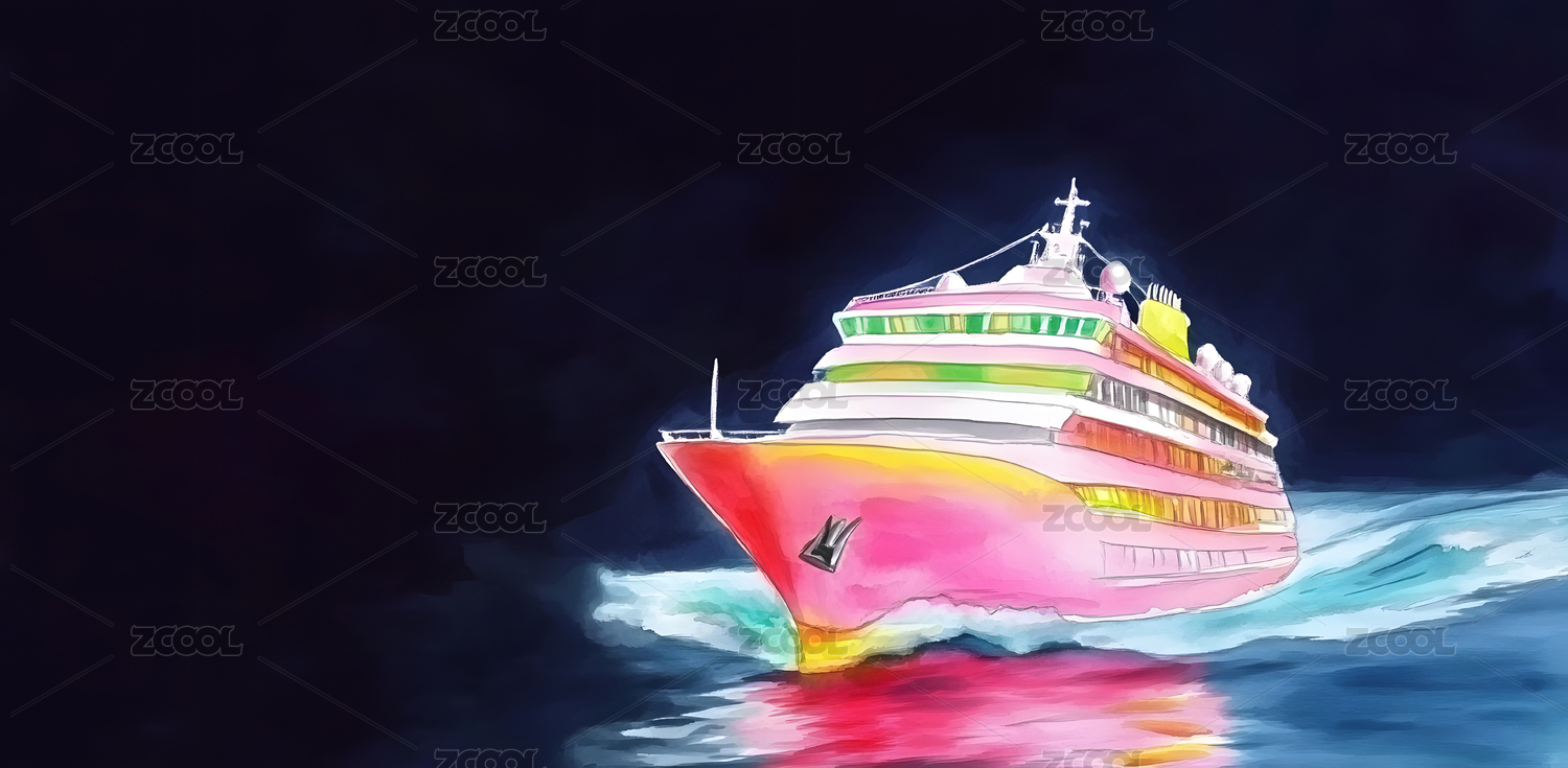 卡通3D旅游豪华轮船主题背景