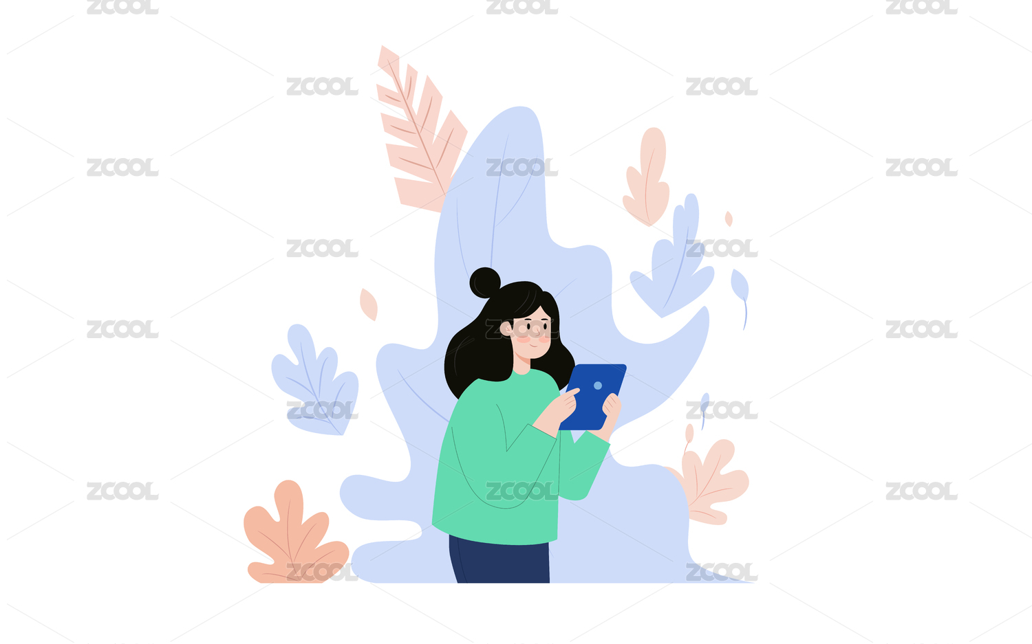 插图,女生,牌子,举着,背景,花草,装饰,微笑,自信