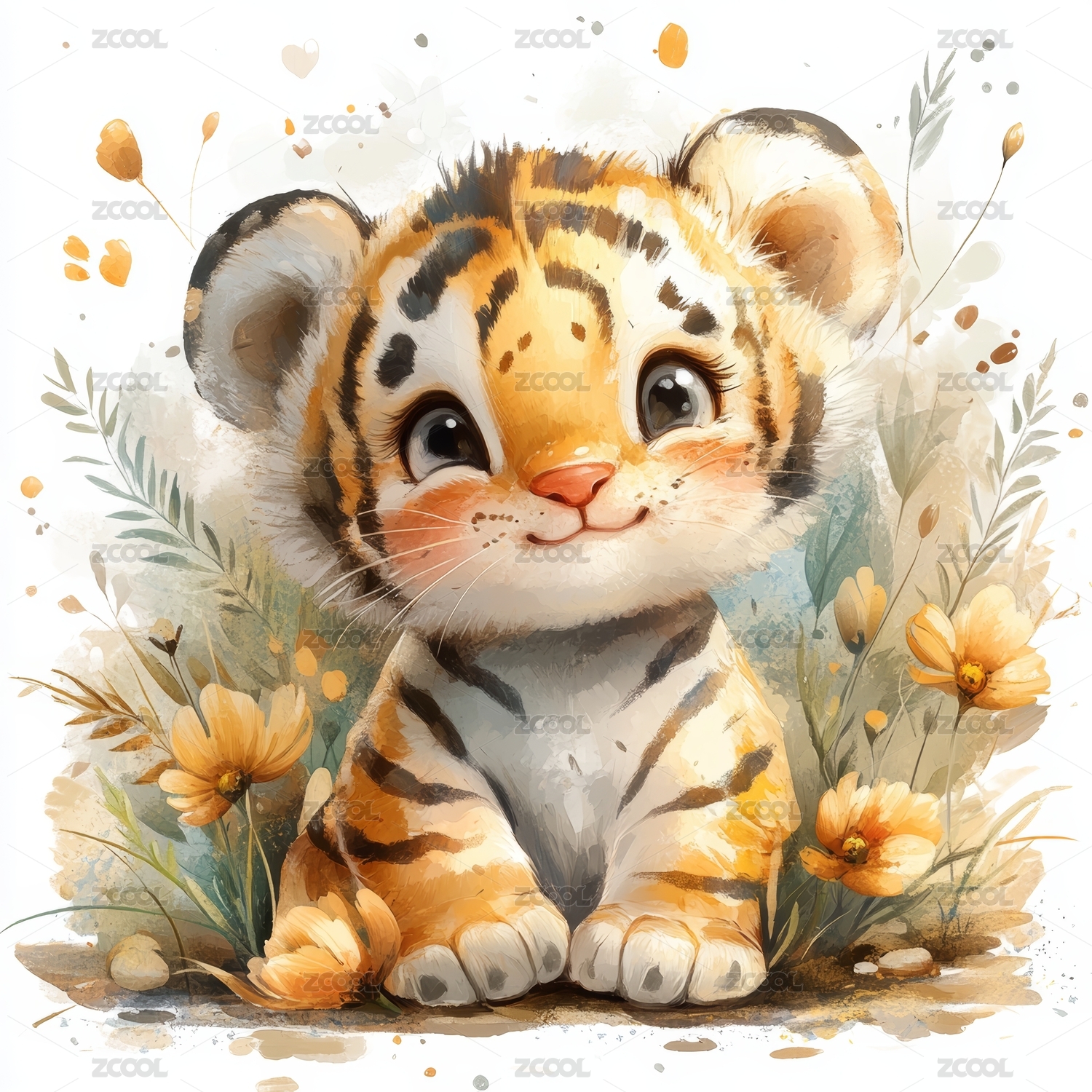 老虎可爱唯美野生动物3D卡通插画壁纸