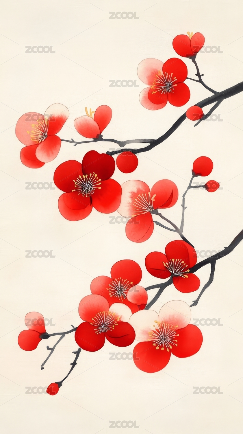 艺术,绘画,红色,写意,花卉,优雅,植物,精致,意境,自然