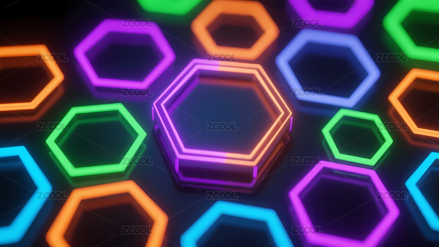 霓虹灯,六边形,图案,多彩,抽象,发光,灯光,背景,设计,深色