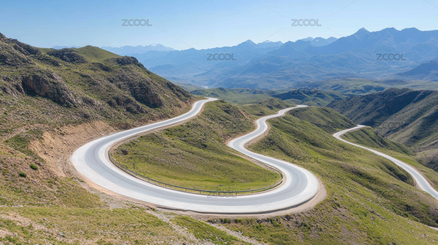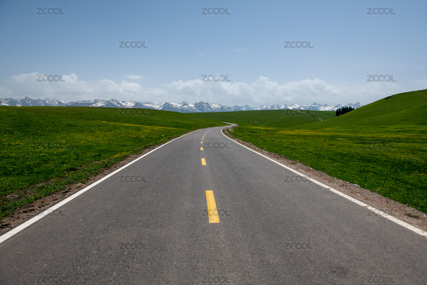 中国新疆特克斯喀拉峻风景区草原上公路弯道