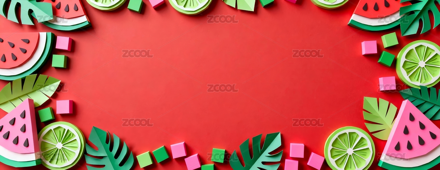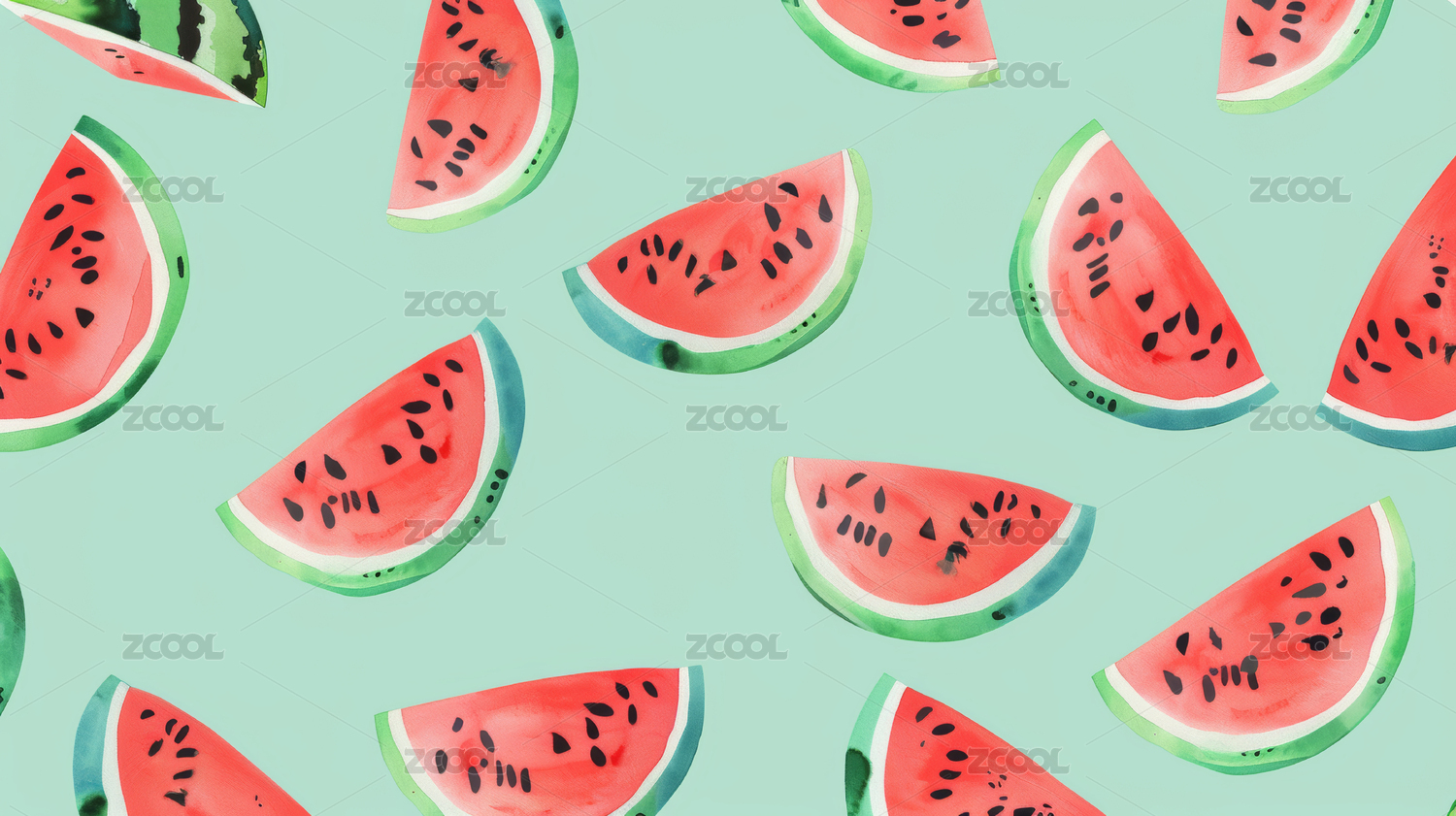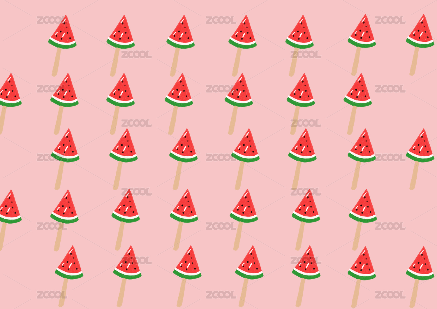 橙色的冰棒和西瓜片在浅蓝色的冰水中