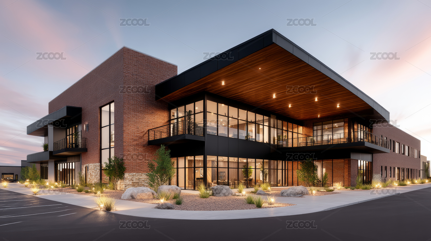 夜晚灯光下的红砖建筑
