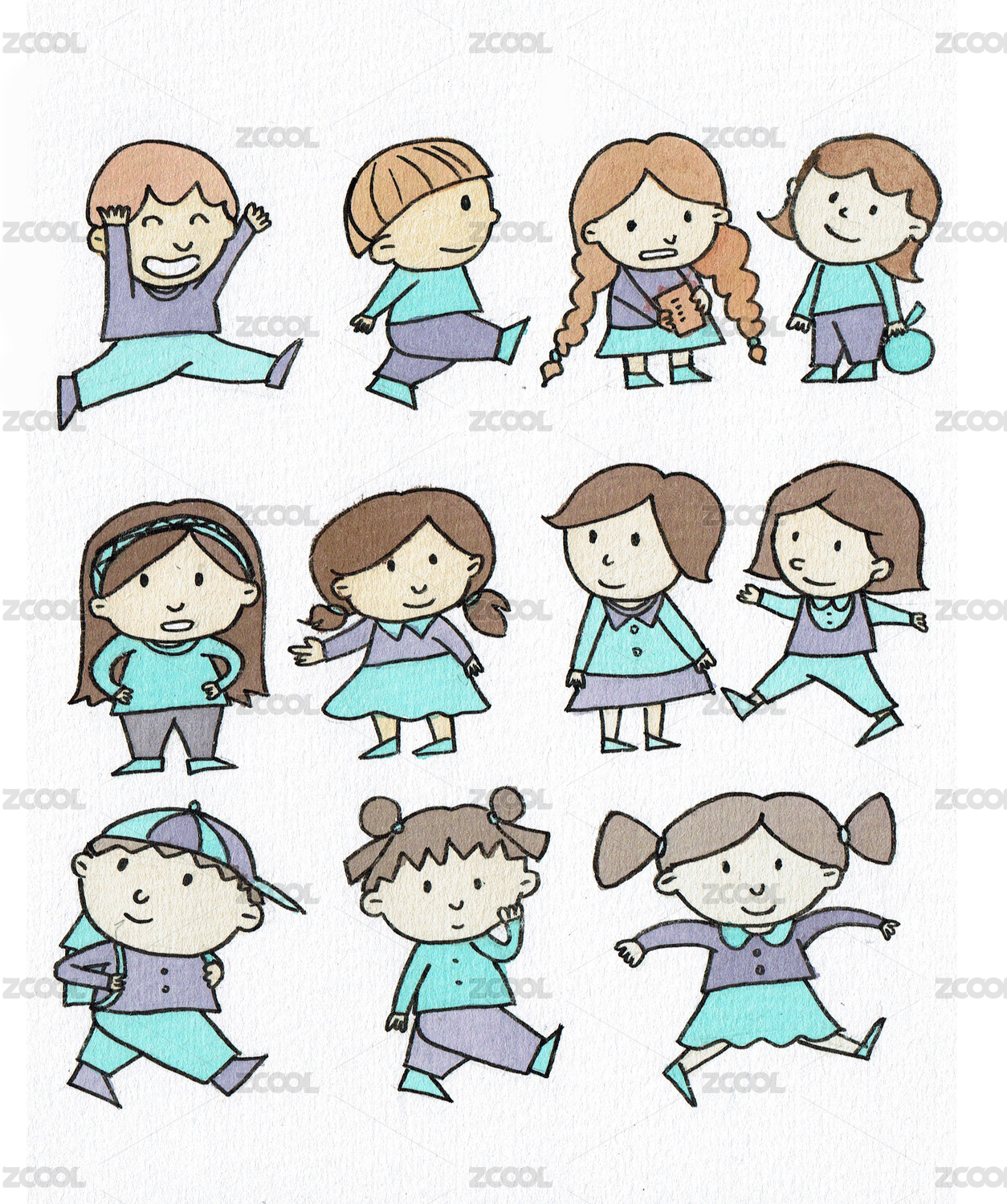 手绘插画儿童动作神态