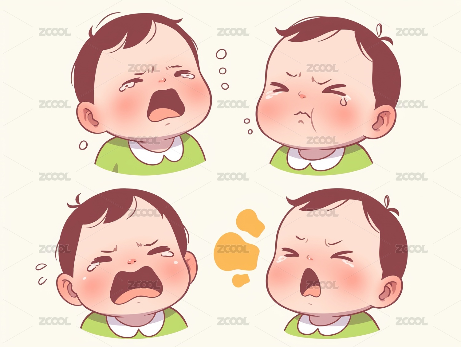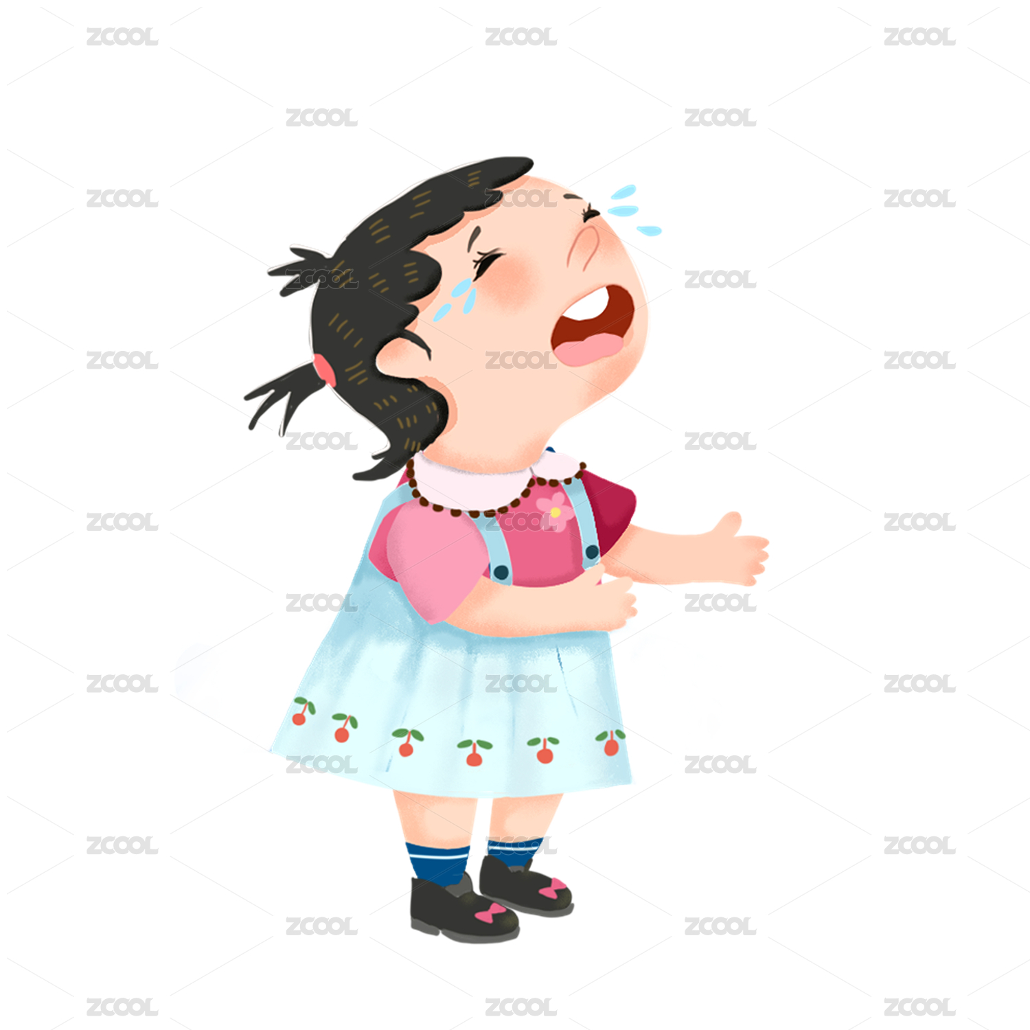 一个卡通男孩双手捂着脸哭泣高清图片