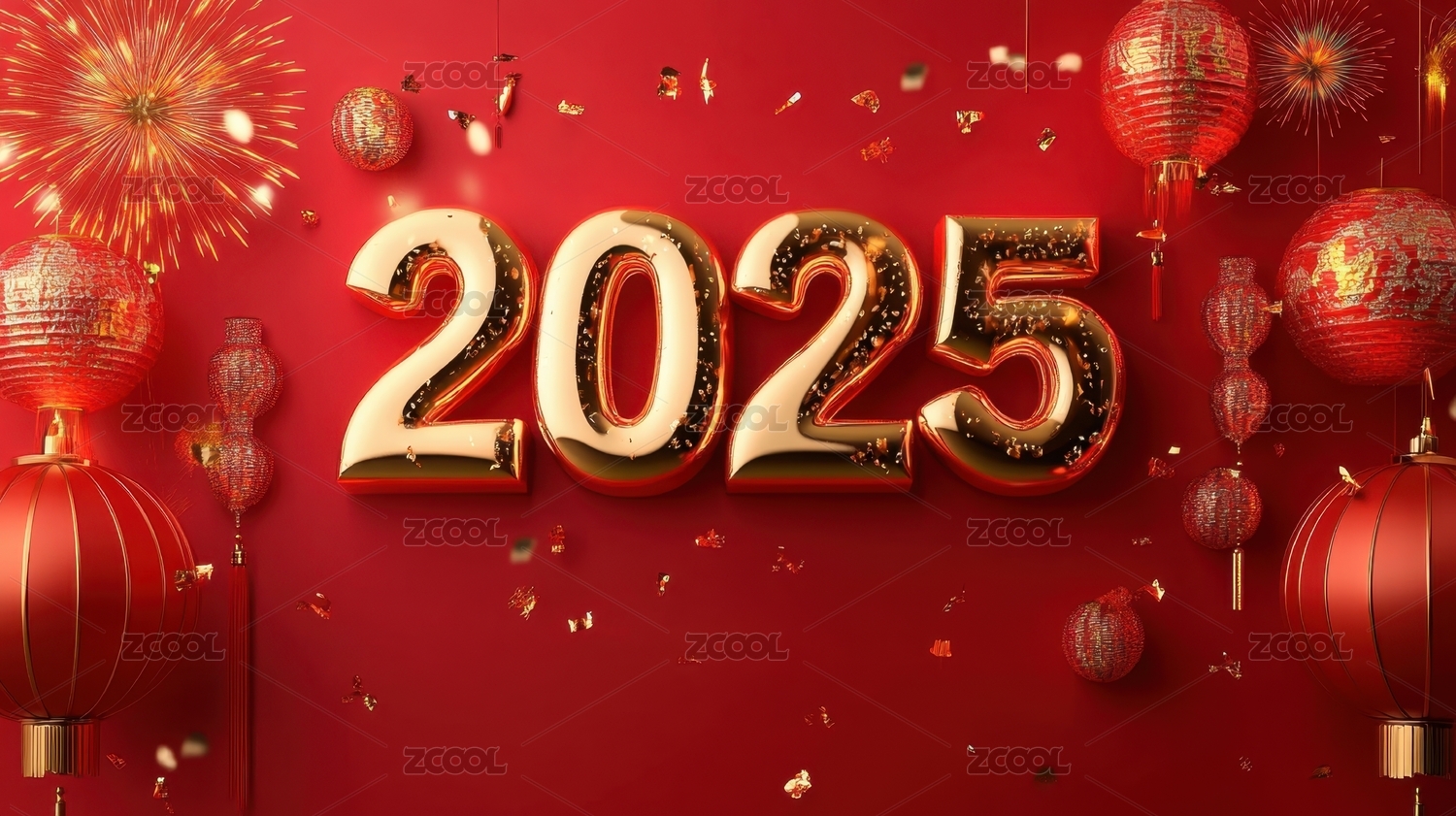 蛇年新年元旦节日喜庆“2025”红色灯笼