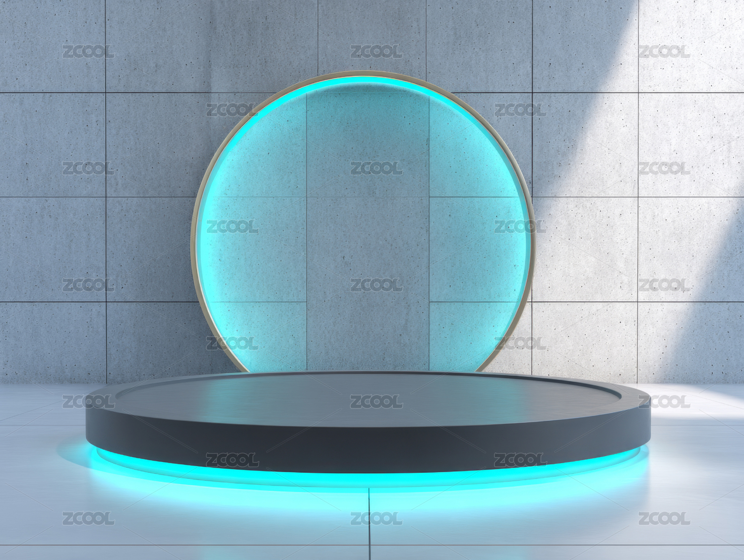 蓝色光圈环绕的阶梯式展台