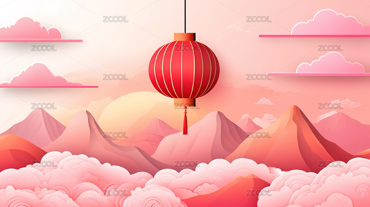 红色背景下的灯笼与云朵