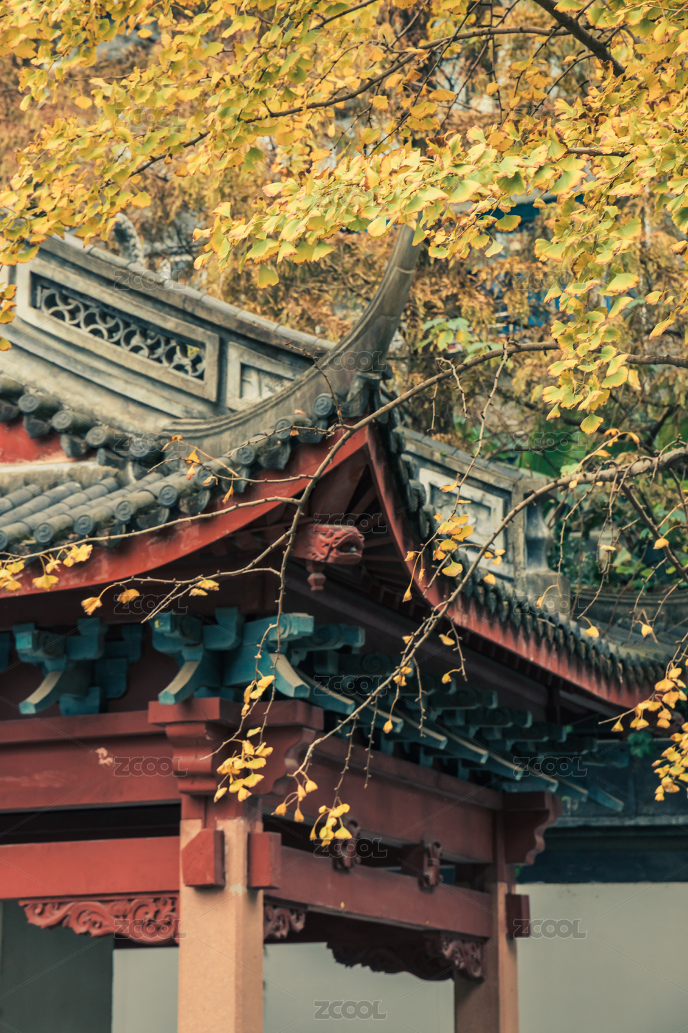 江苏,南京,朝天宫,银杏,传统,建筑,红墙,树,植物,秋天