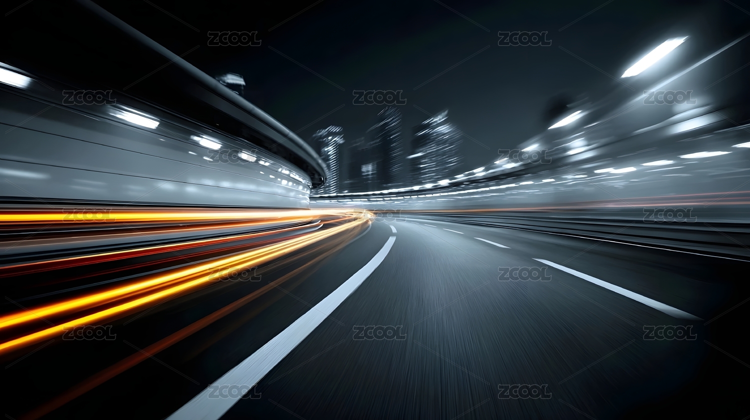 3D摩登高速模糊隧道与城市夜景