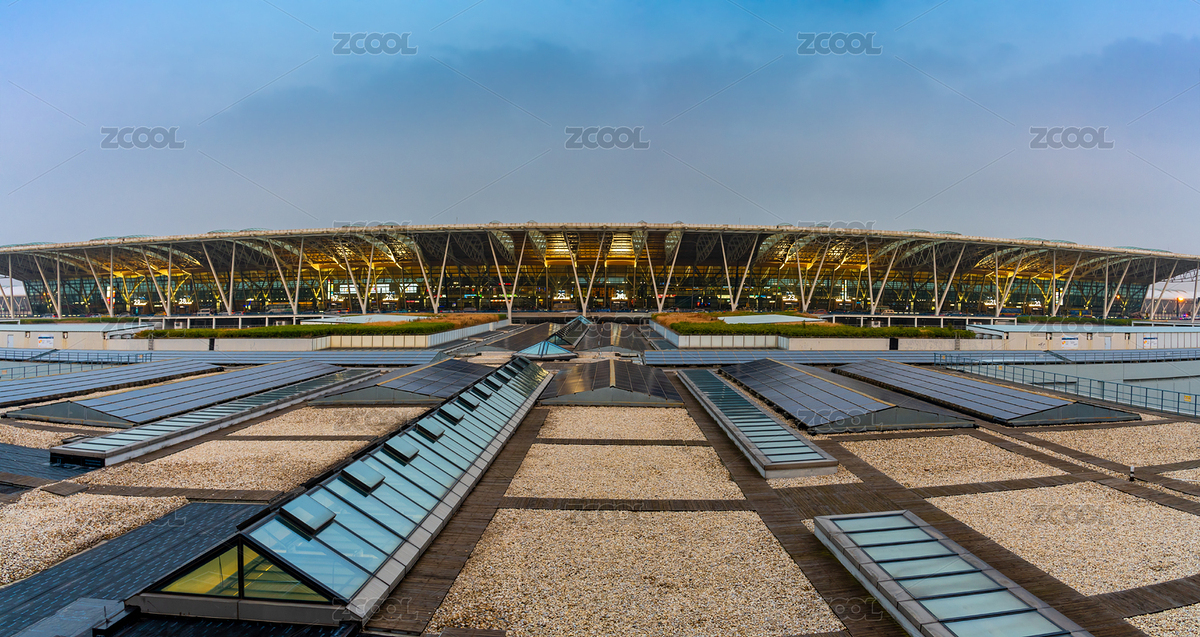 上海,市区,城市,机场,国际,航站楼,傍晚,黄昏,灯光,建筑