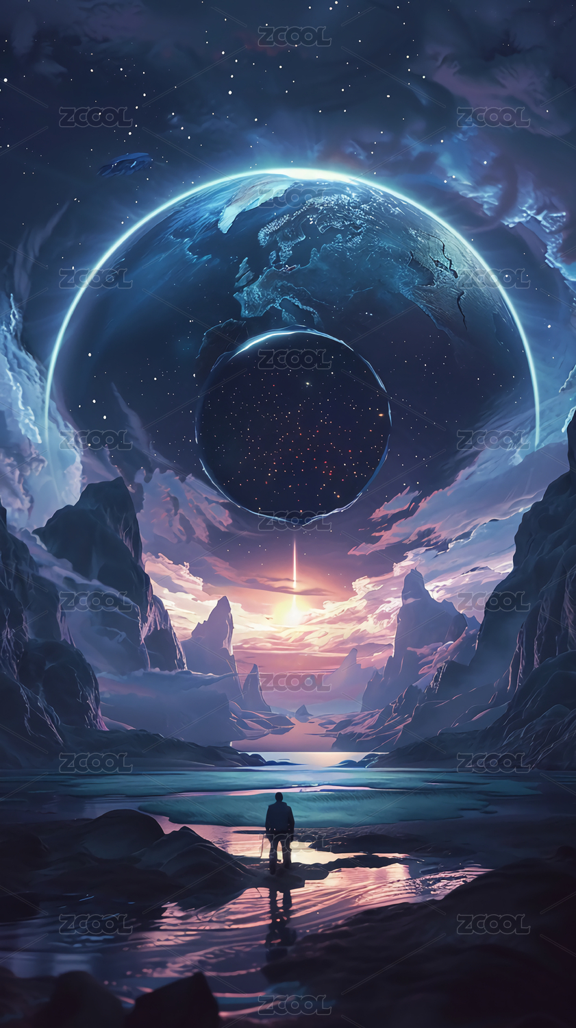 天空,日落,幻想,设计,艺术,梦幻,抽象,几何,形状,景观