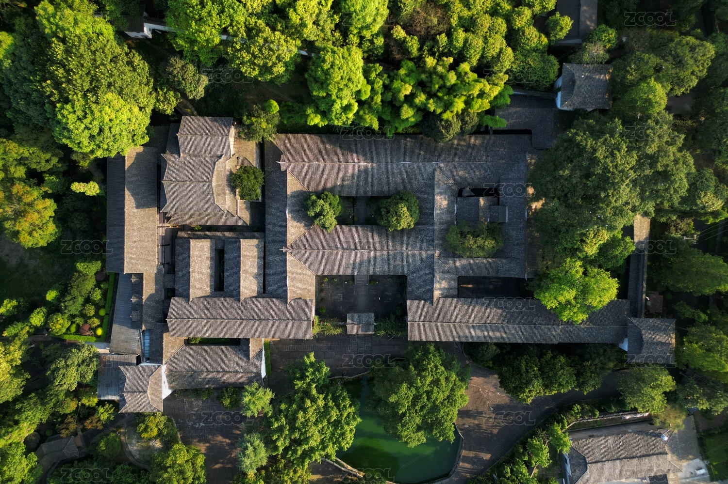 中国浙江绍兴柯岩风景区柯岩鲁镇航拍