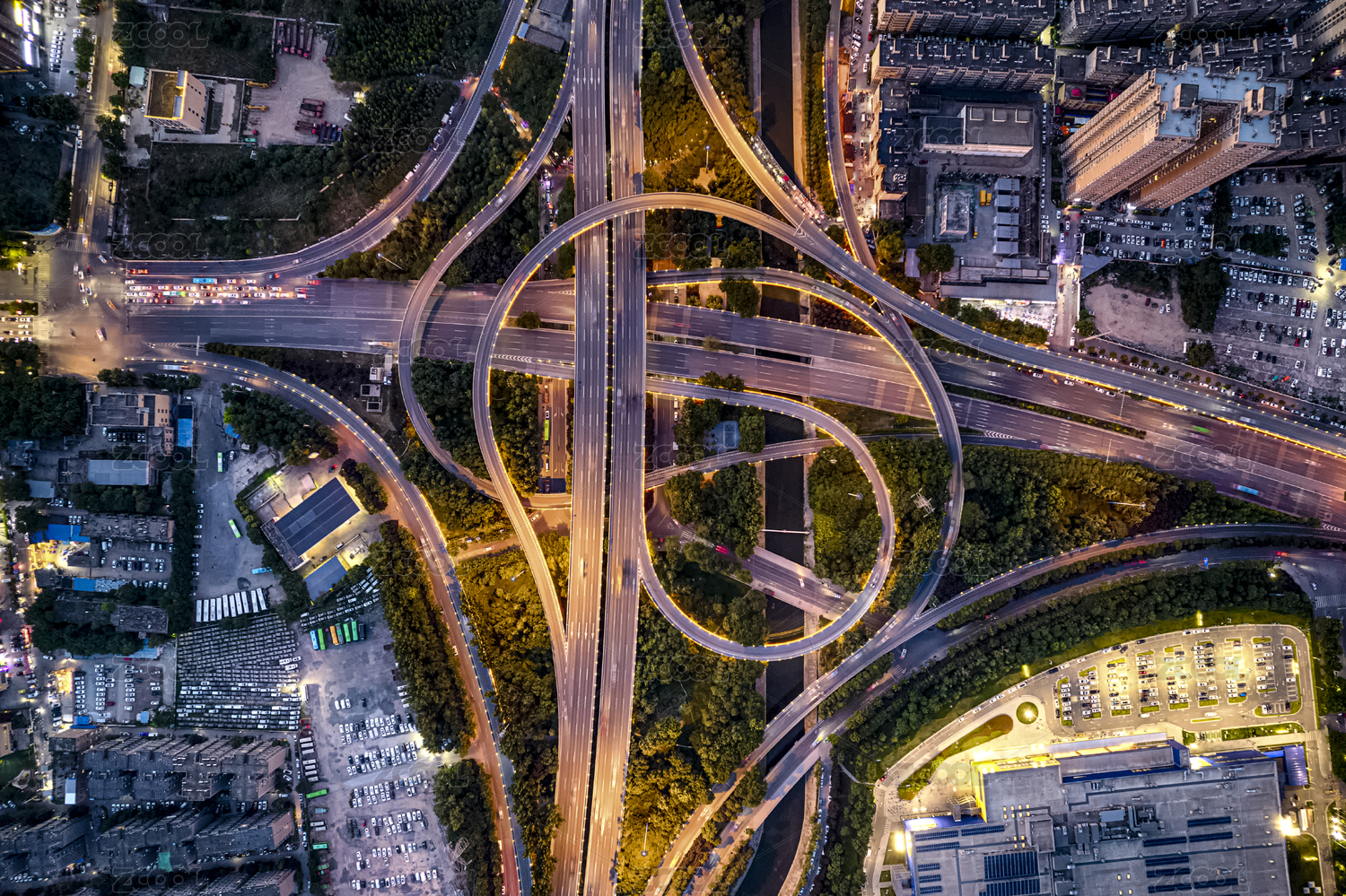 城市,城市景观,公路,黄昏,建筑,交通,立交桥,路,摩天大楼,汽车
