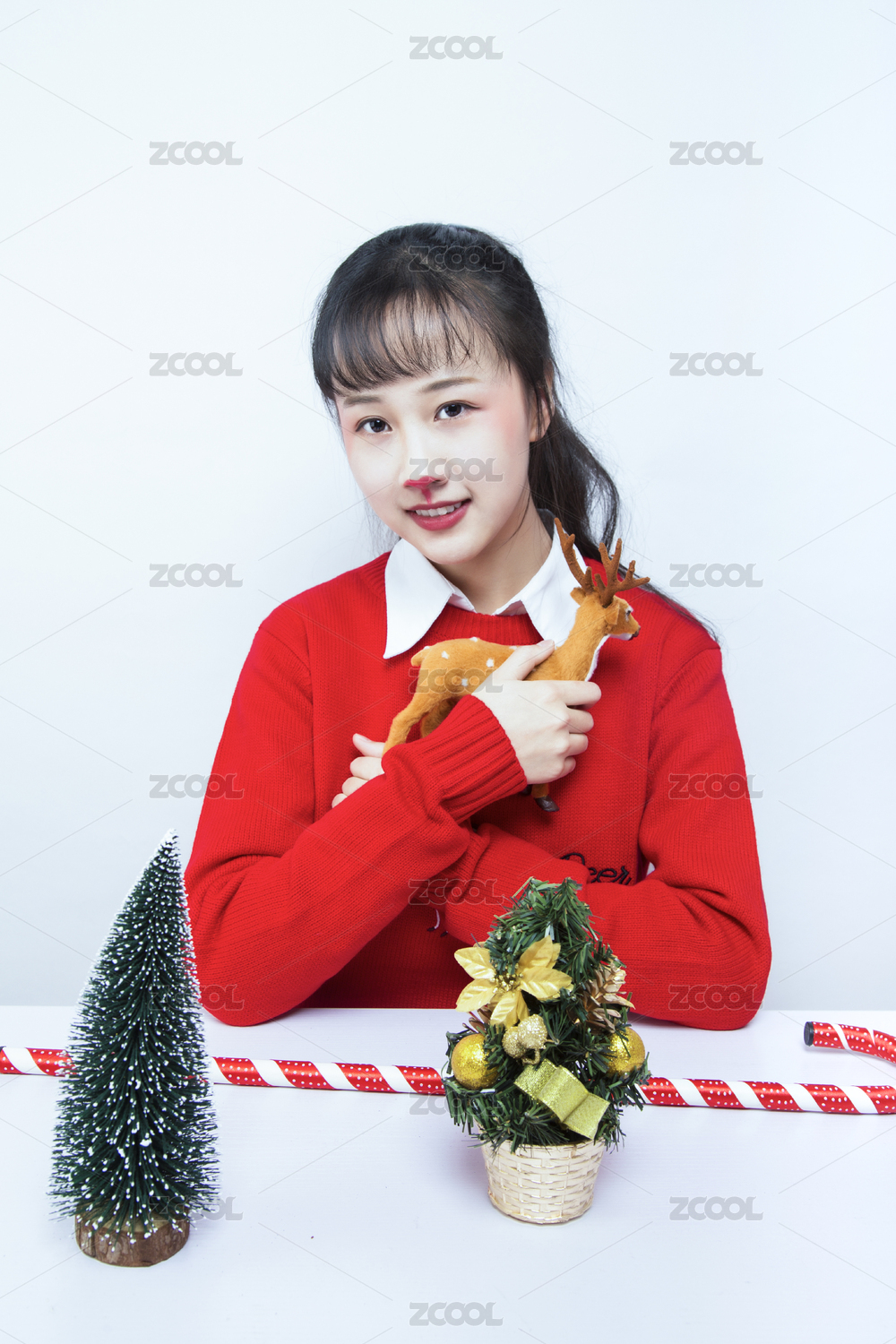 传统的,冬季,过节,红色,环境人像,节日假日,礼品,礼物,美女,模特