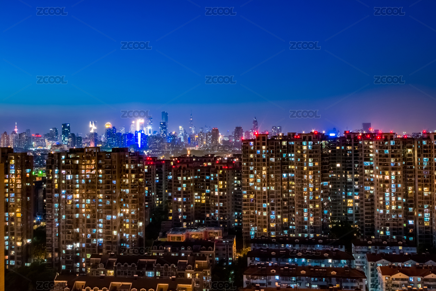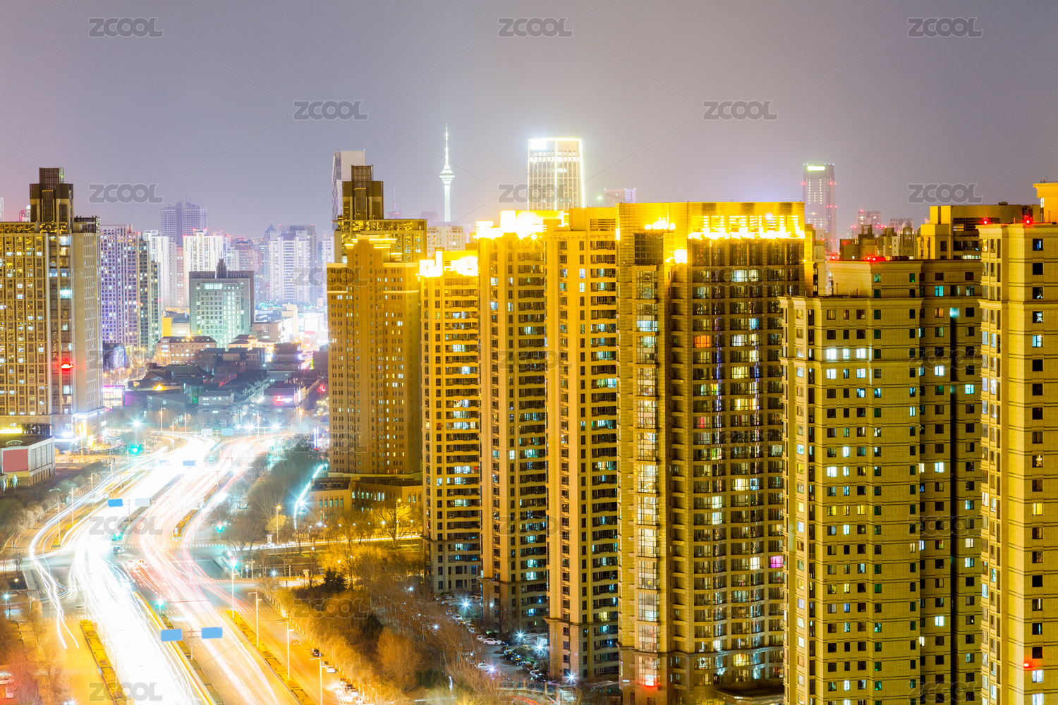 在夜间市容,市中心的天际线尽收眼底,拍摄在中国。