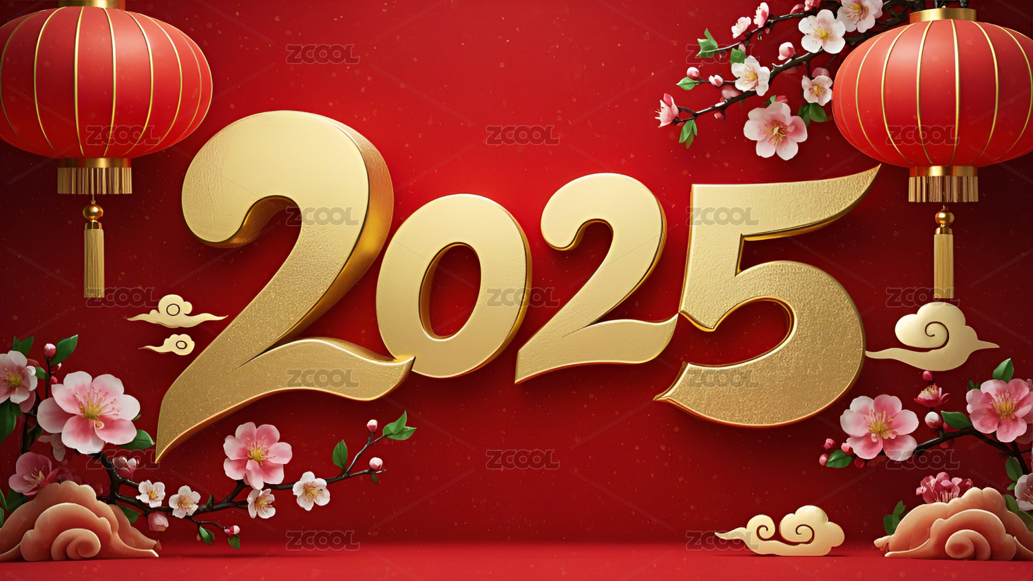 新年,喜庆,节日,蛇年,背景,2025,红色,素材,金色,数字