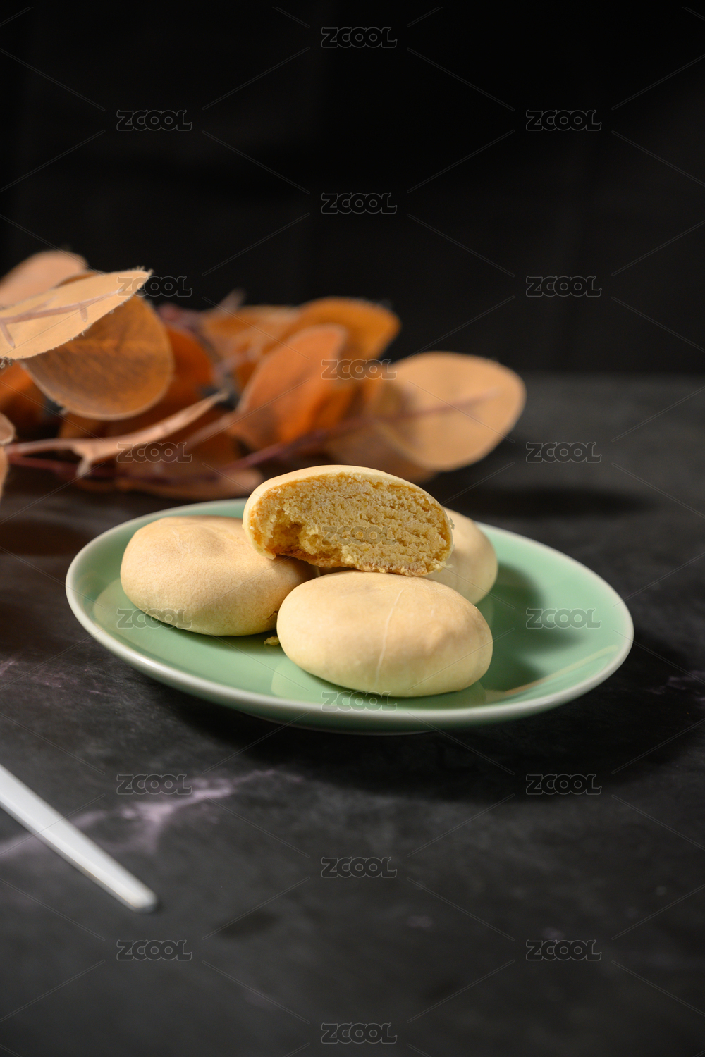 桌面上的盘子里的美味可口的蒸牛奶蛋糕
