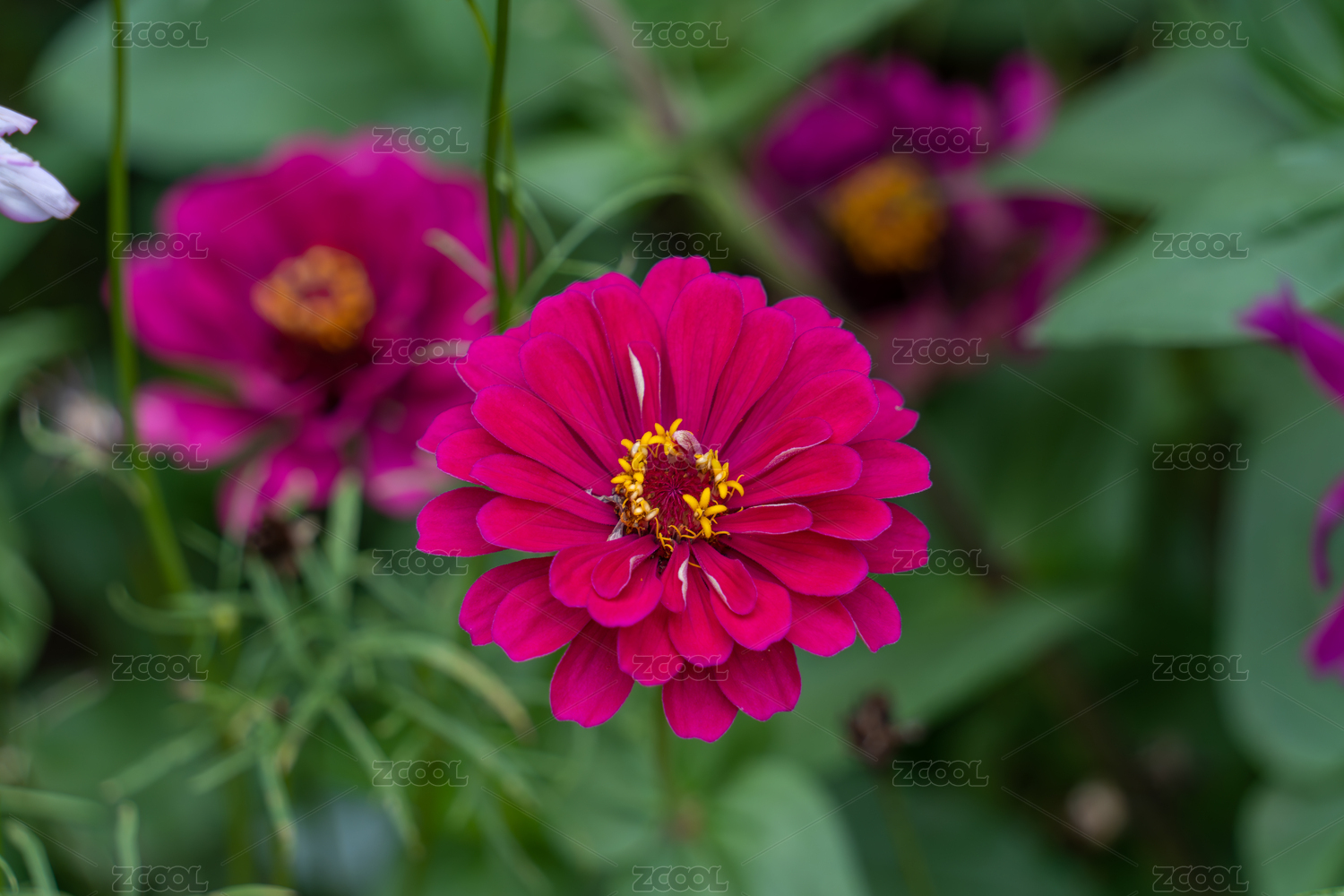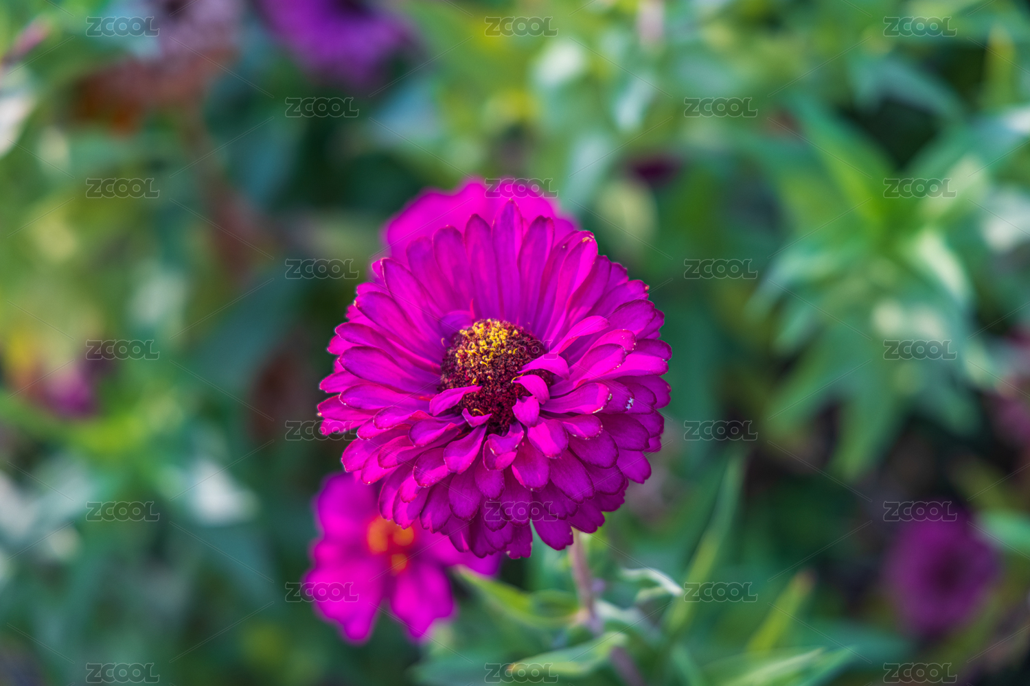 艳丽紫红色百日菊特写