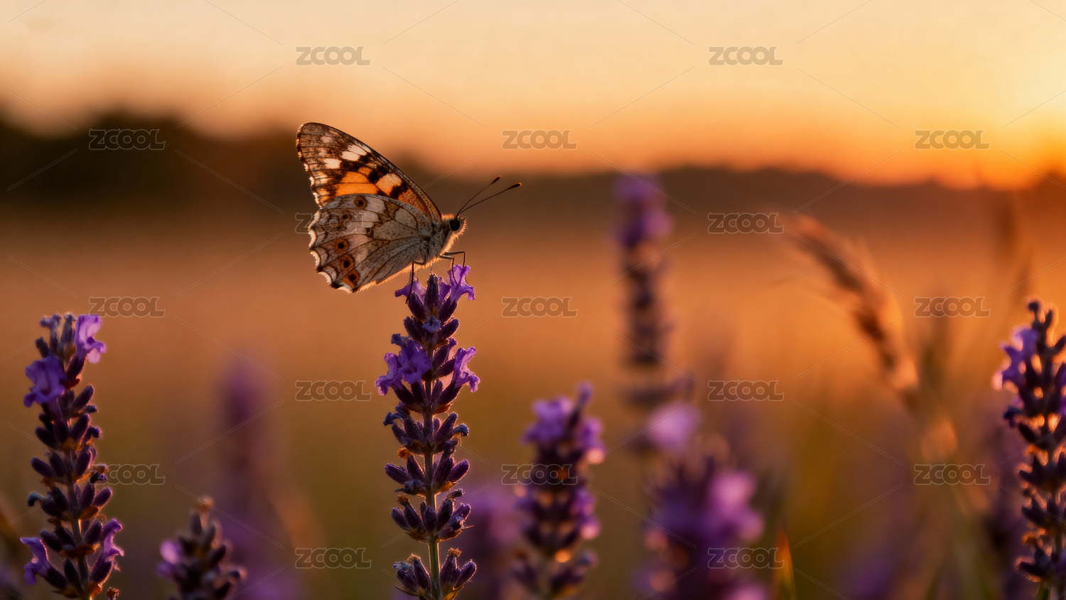 一只蝴蝶在蓝花鼠尾草丛中授粉
