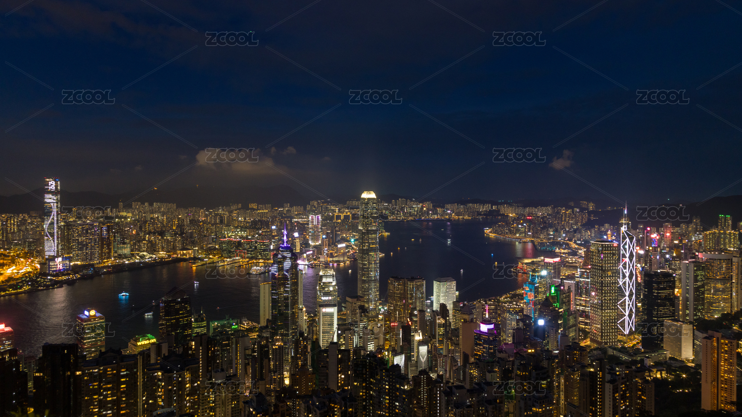 中国香港太平山俯瞰维多利亚港城市繁华夜景