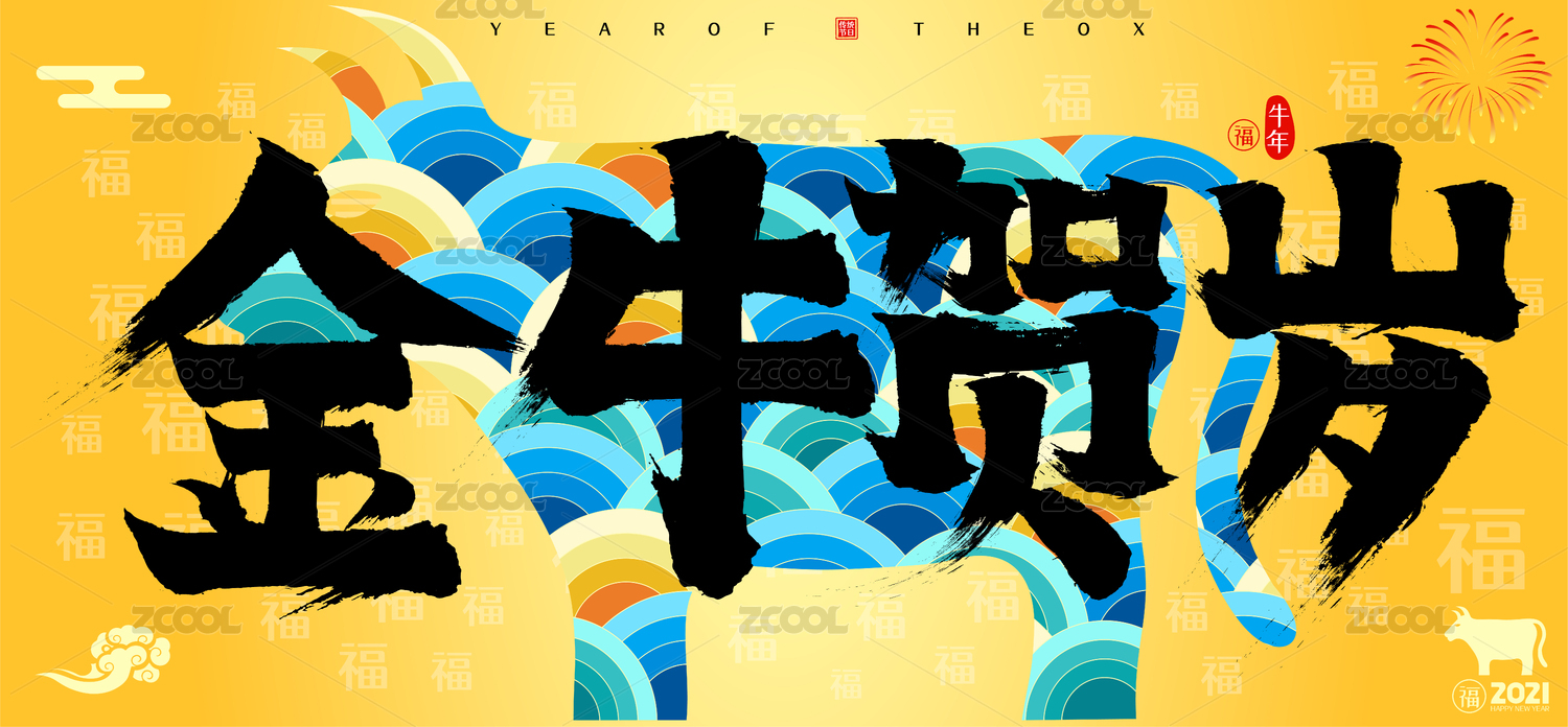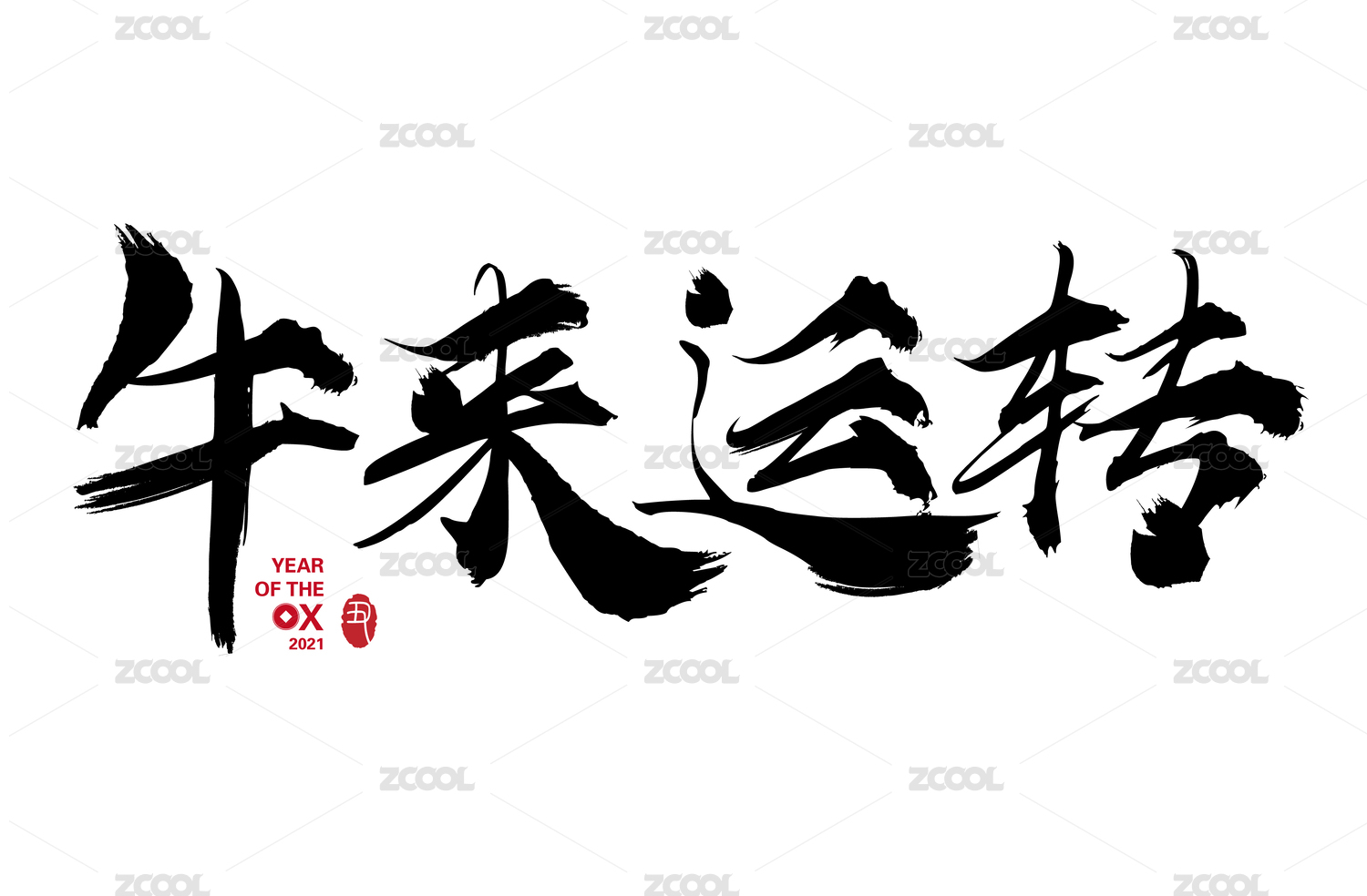 金牛逗猫-中文手写汉字书法字体字形中国风