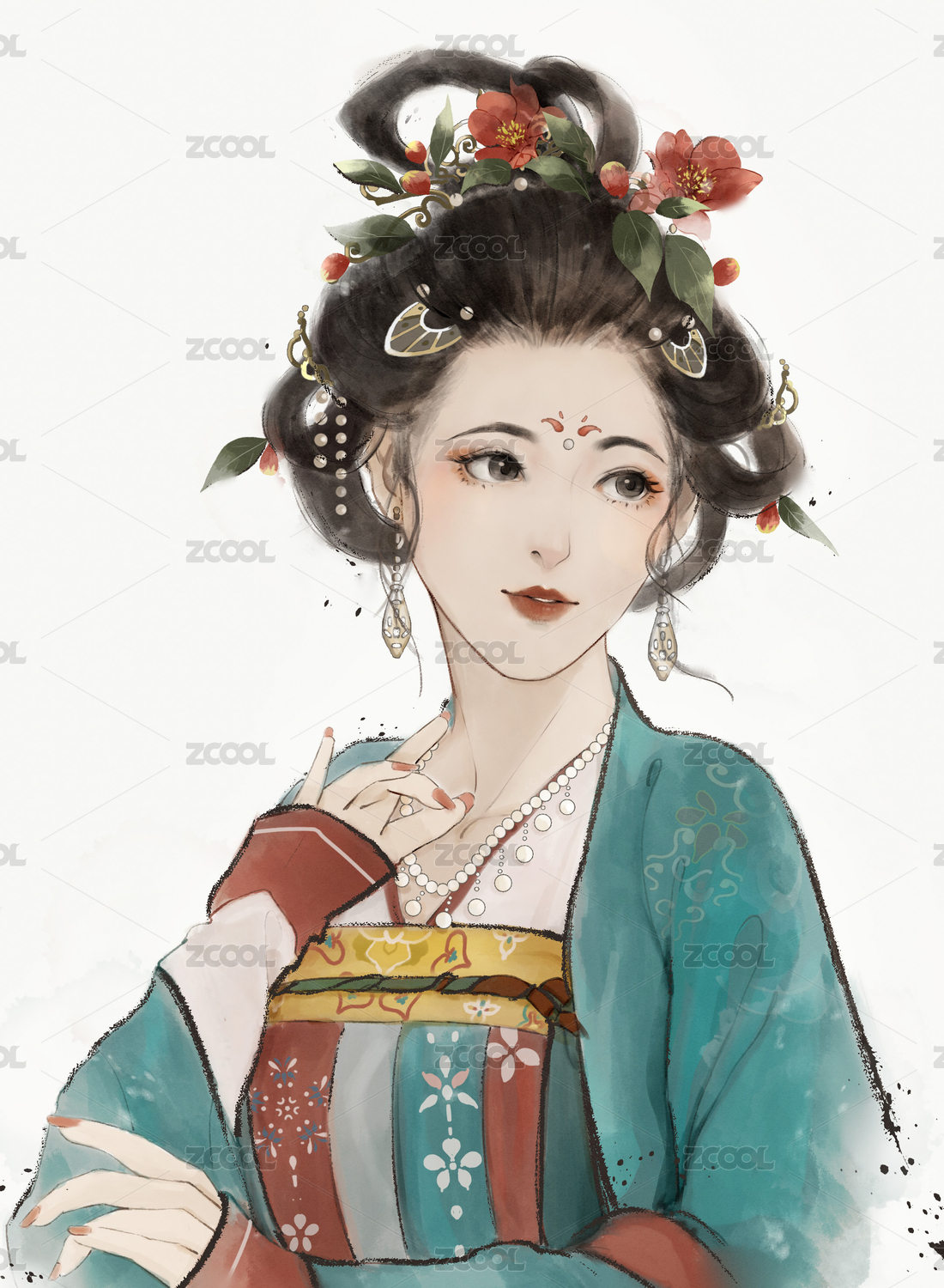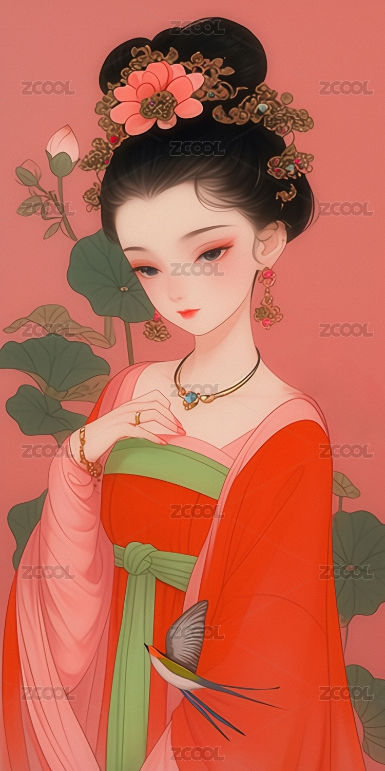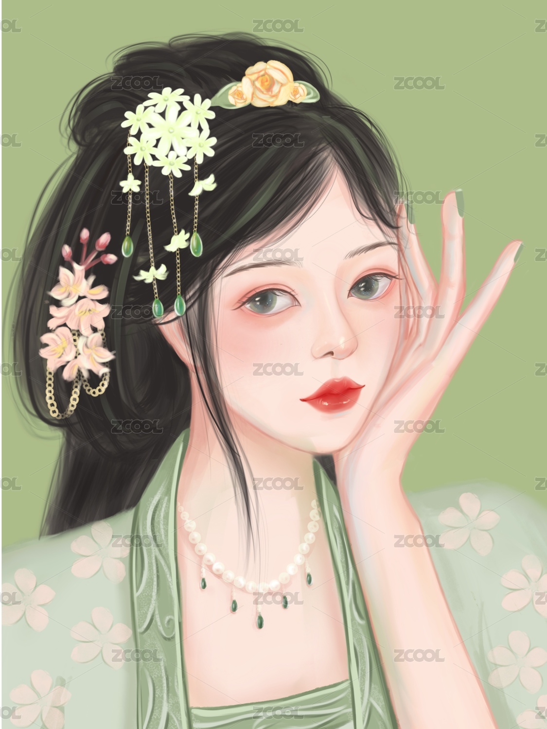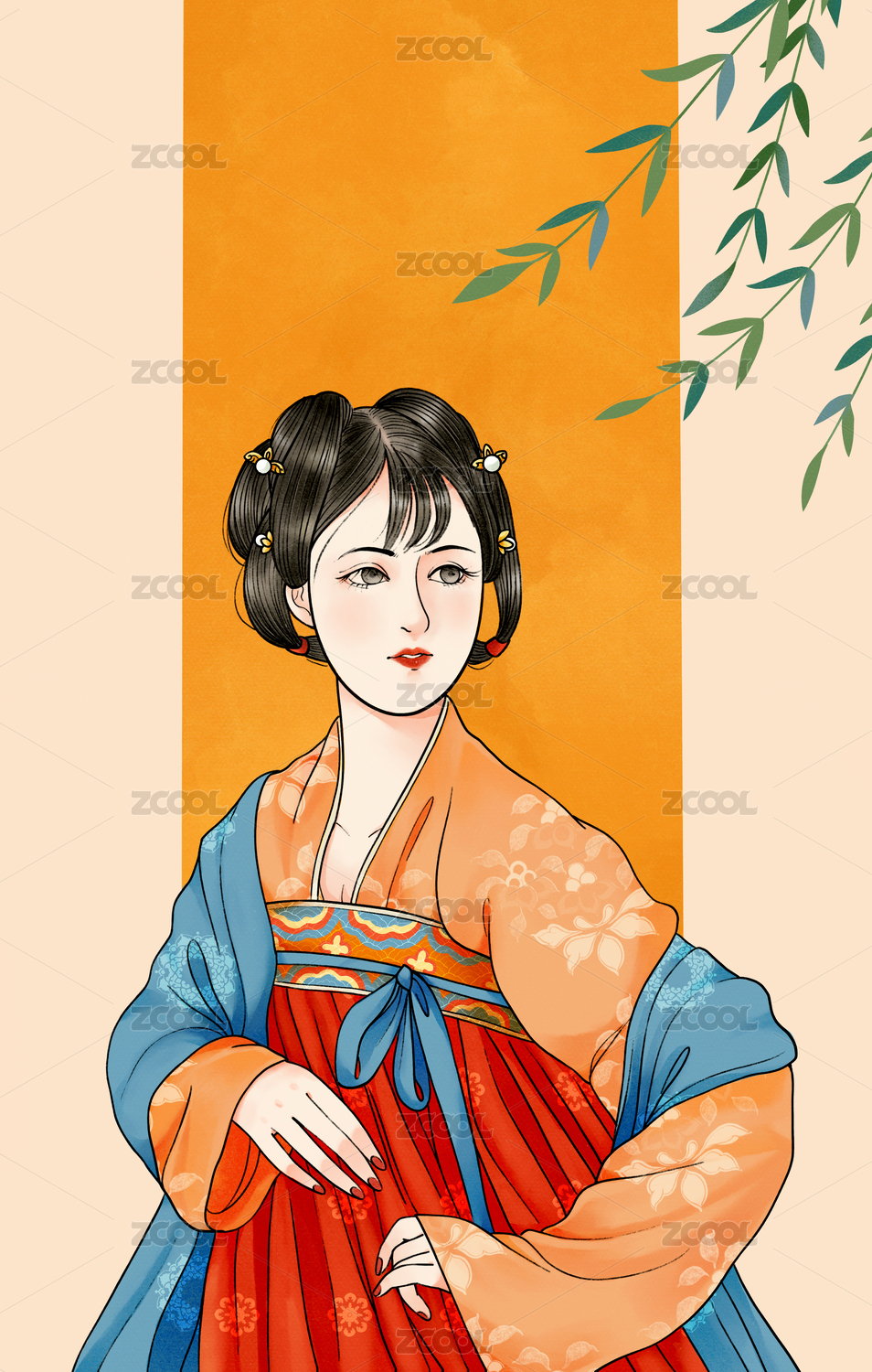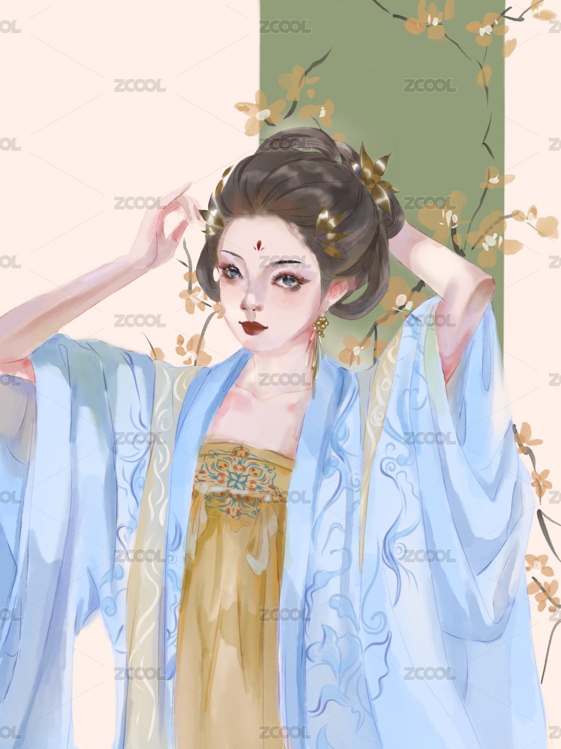 国潮,古风,插画,新国风,女孩,唐代,复古,花季
