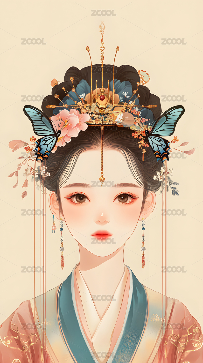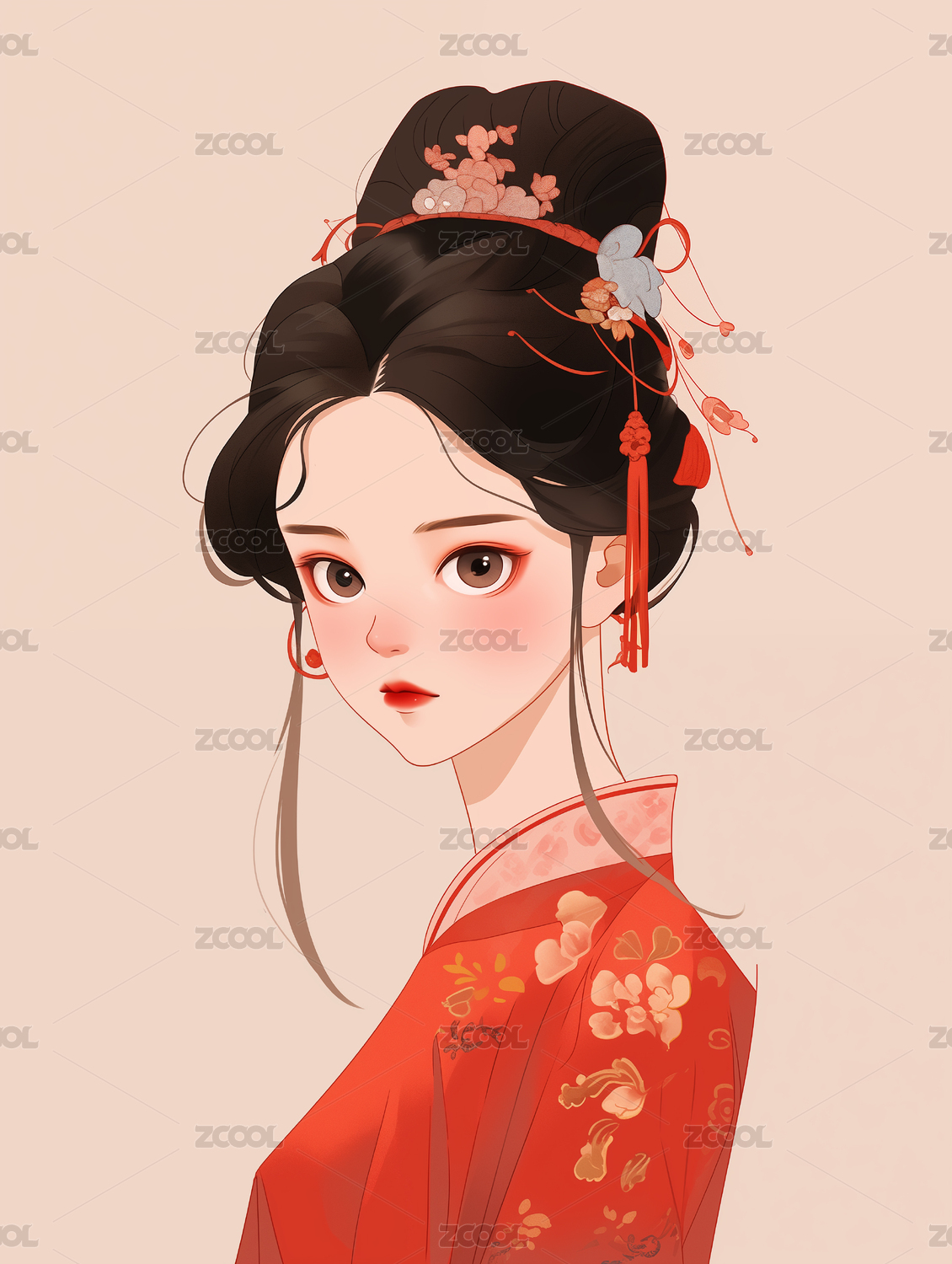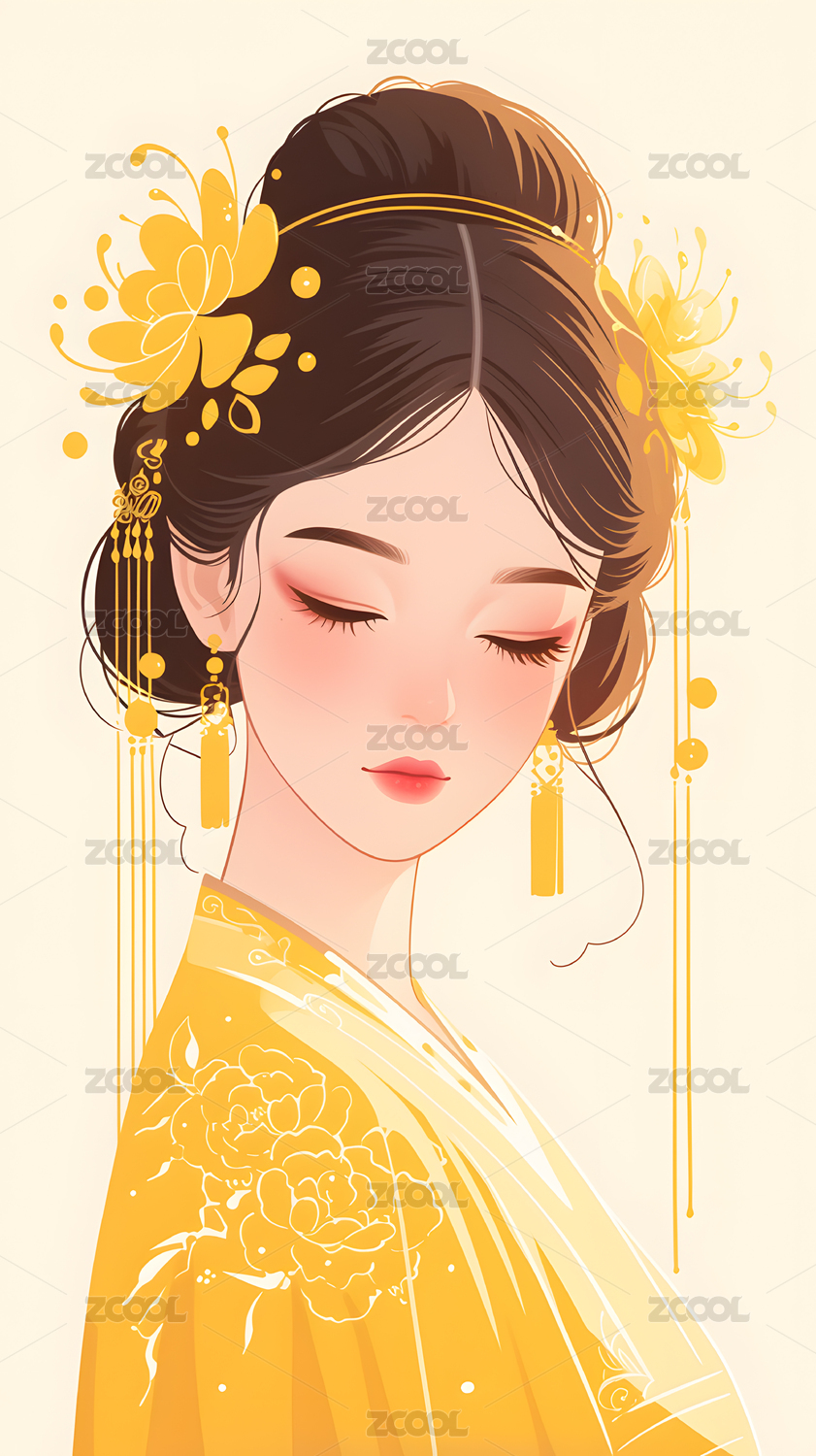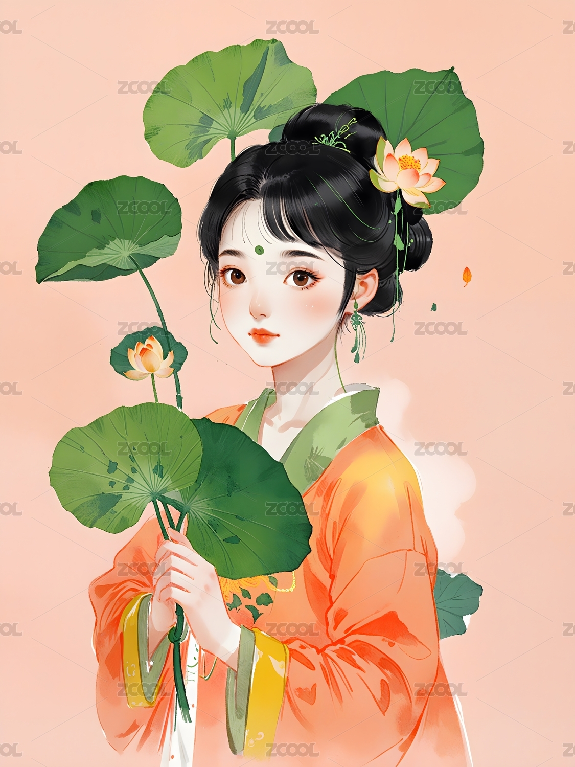 国潮,古风,插画,新国风,女孩,唐代,复古,花季