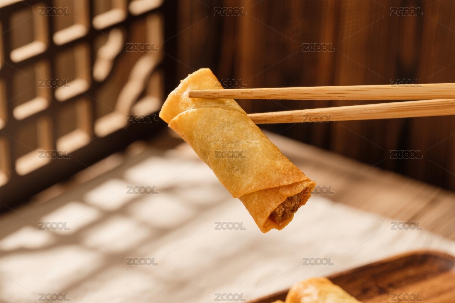 春卷美食诱人感展示场景