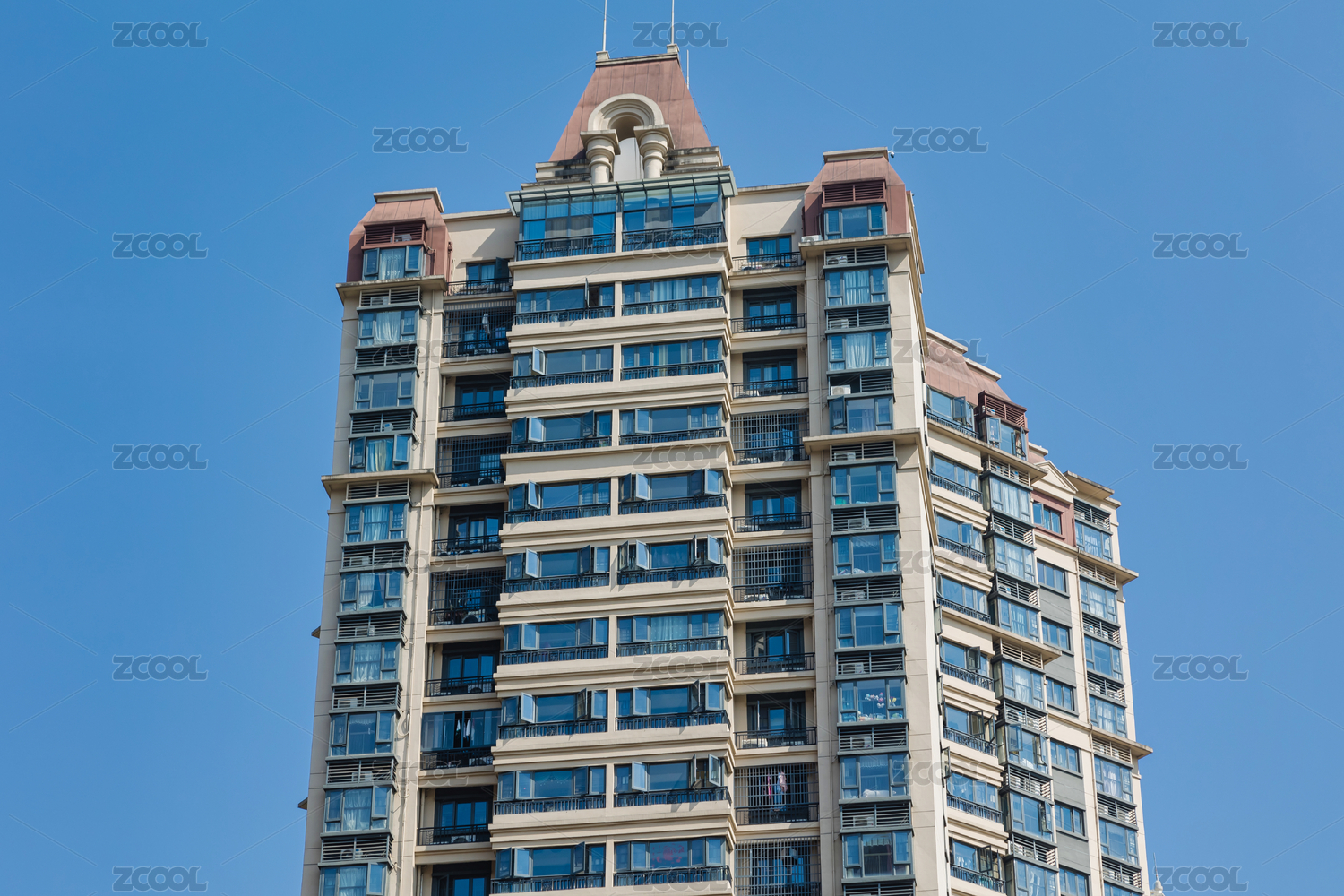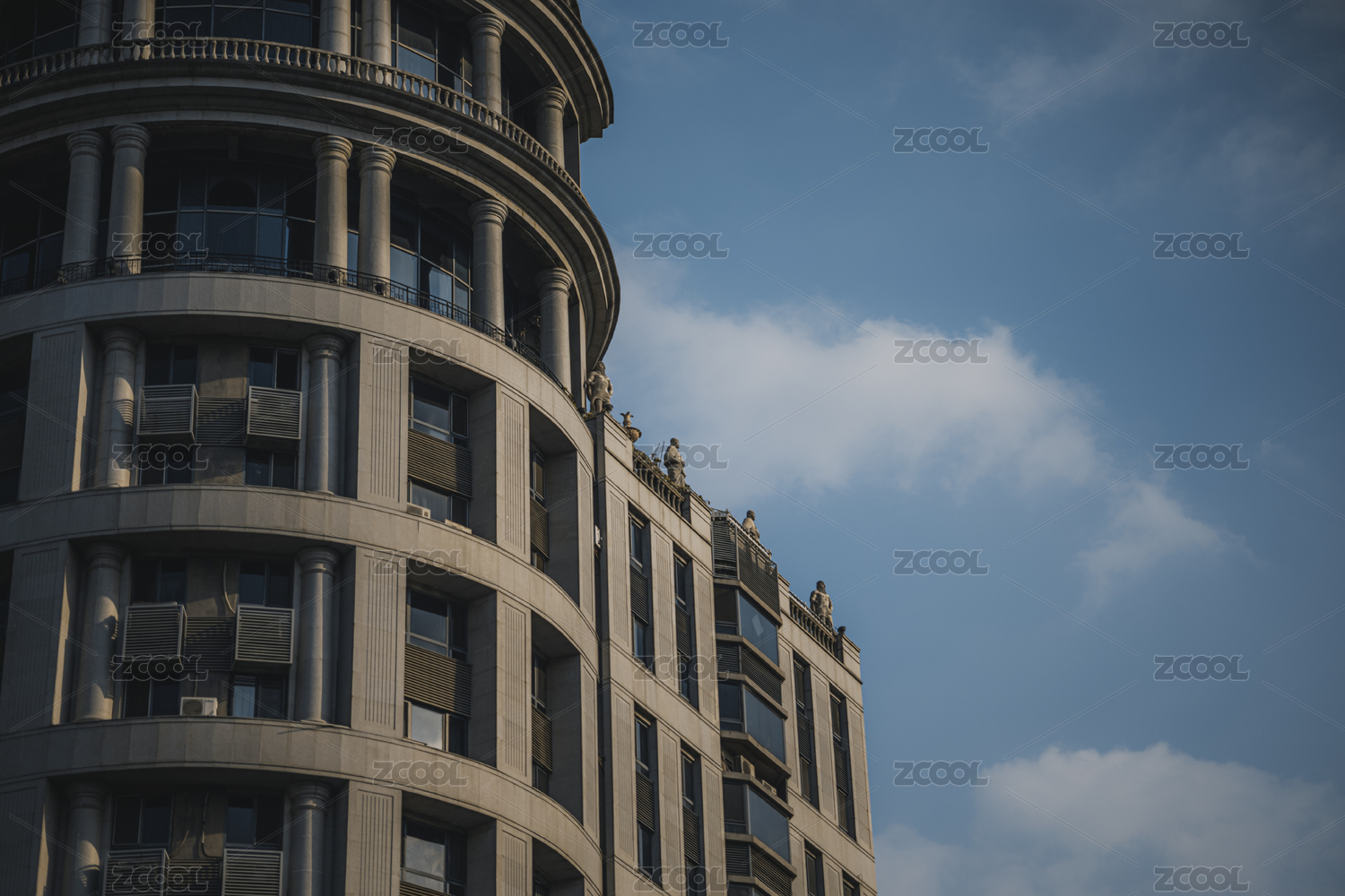 蓝天下的中国上海外滩中心大厦屋顶特写