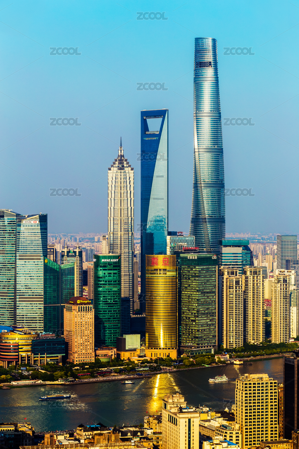 上海市黄浦江外滩陆家嘴都市高楼建筑景观