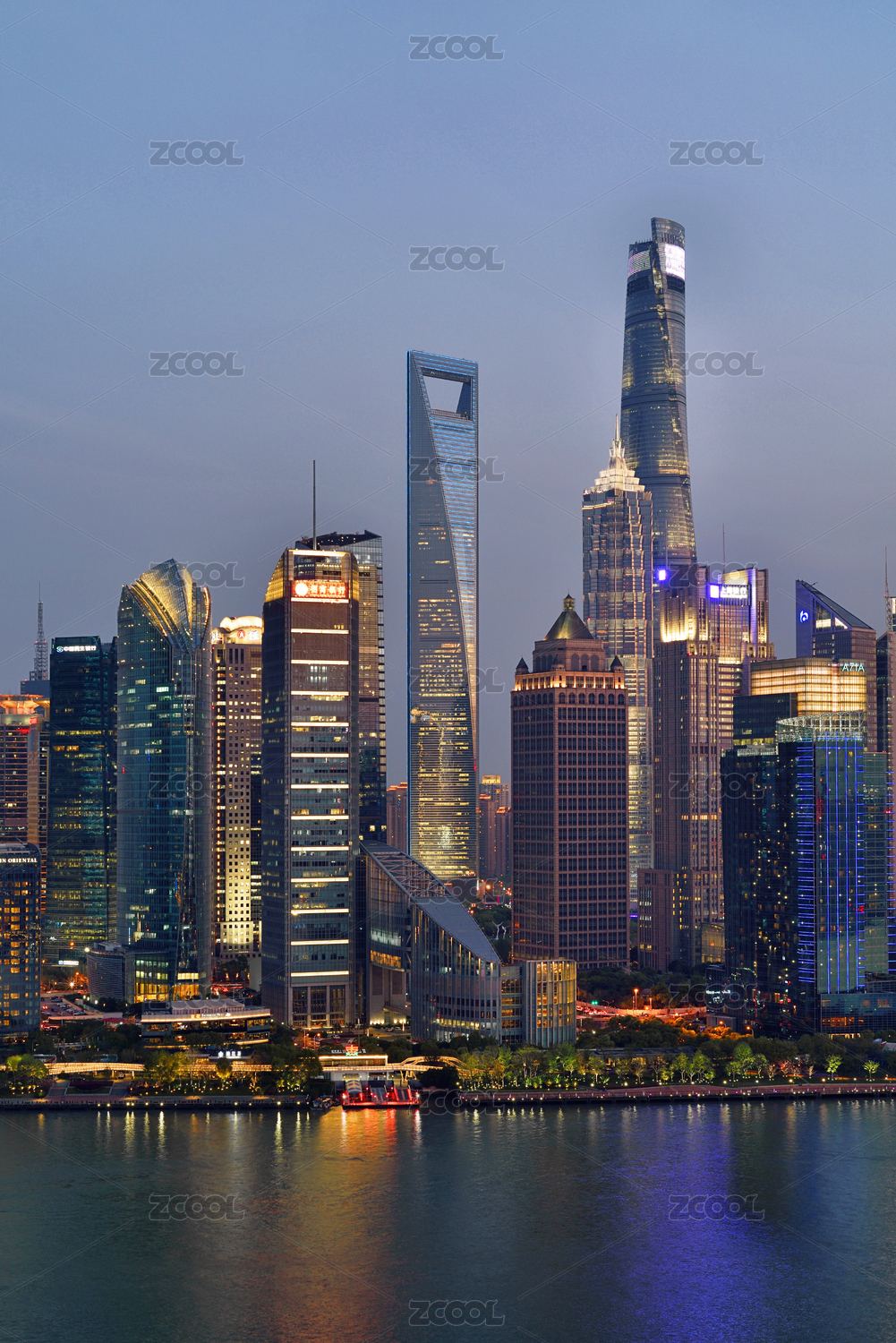 中国上海陆家嘴城市天际线建筑群夜景风光