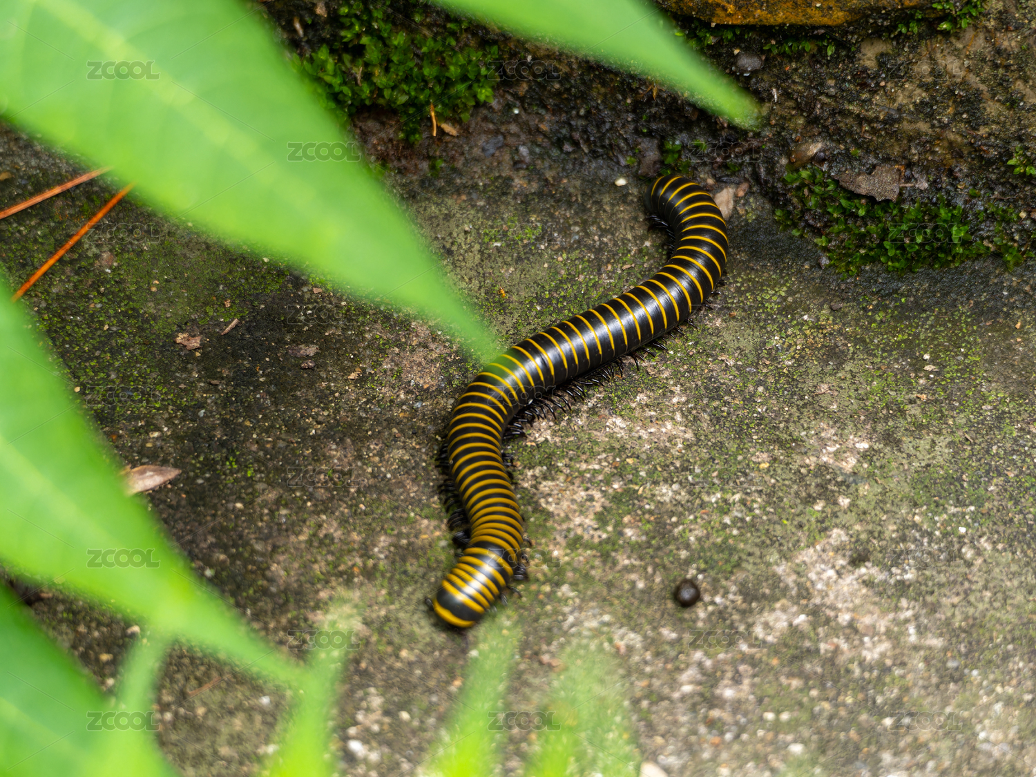 马陆在岩石上爬行
