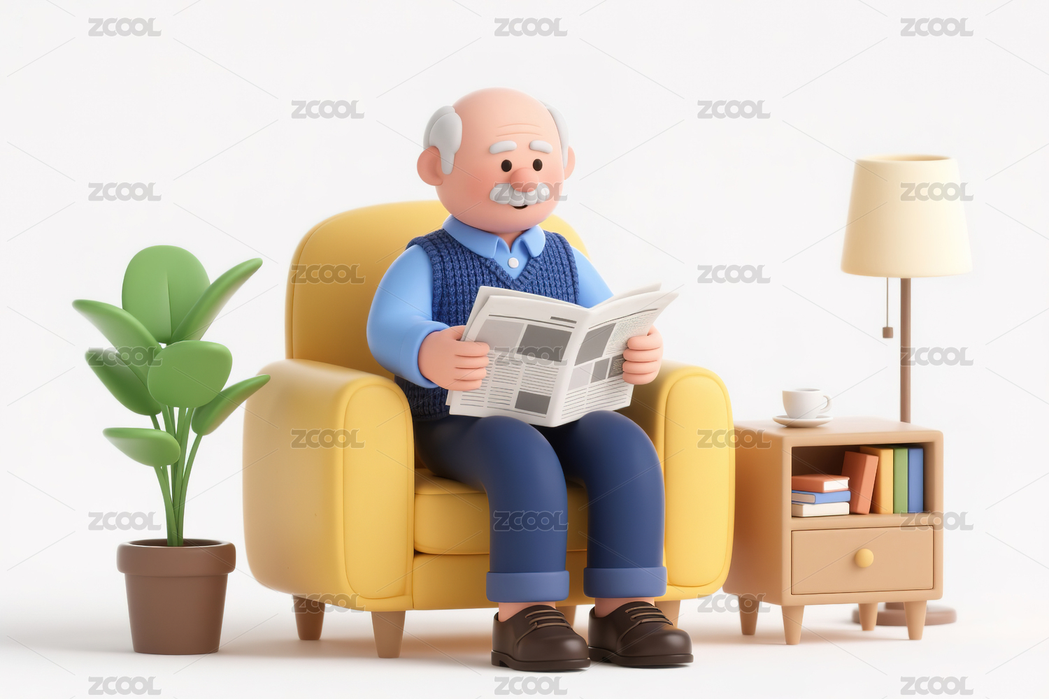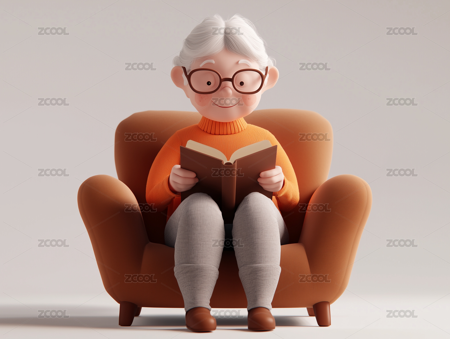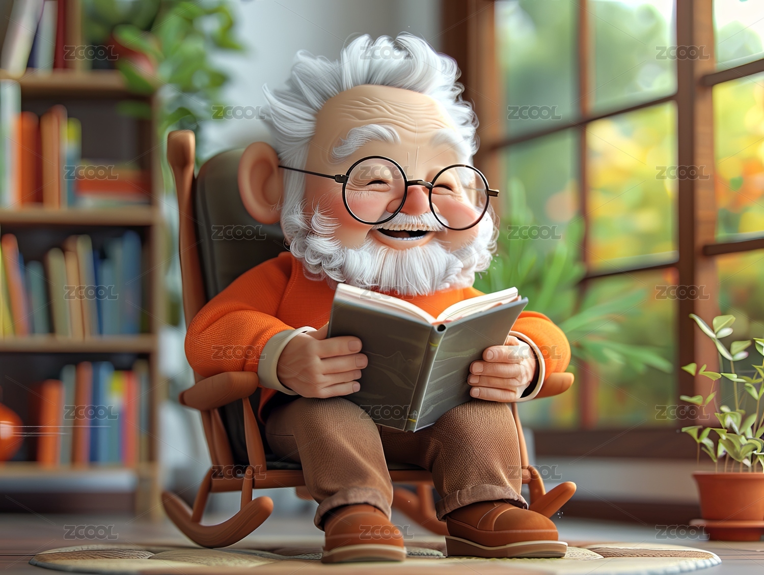 读书,老人,爷爷,看书,享受,退休,摇椅,悠闲,生活,3D