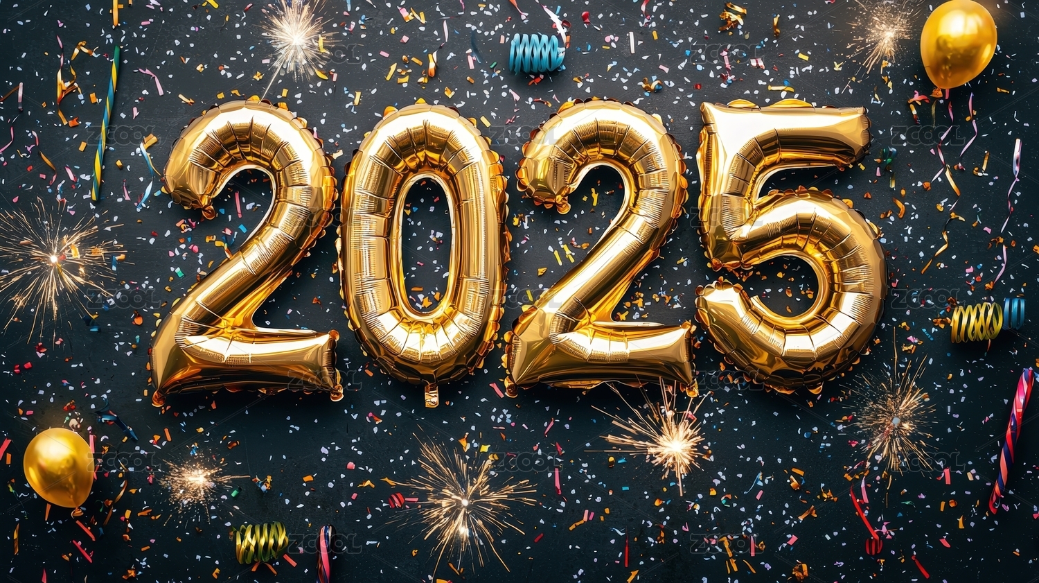 2025礼花中的金色气球数字